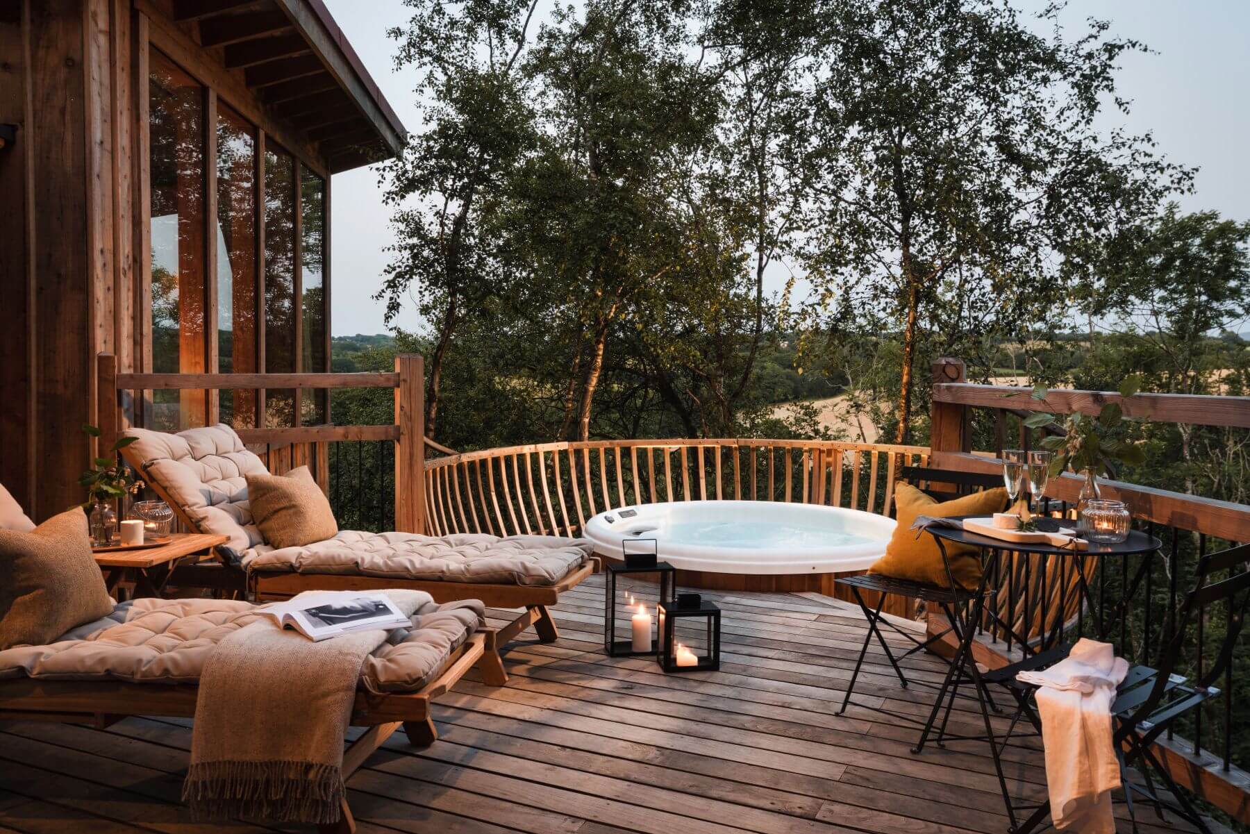 - Indulge in your very own treetop hot tub – the perfect place to unwind with a glass of champagne after a day of exploring the local area.