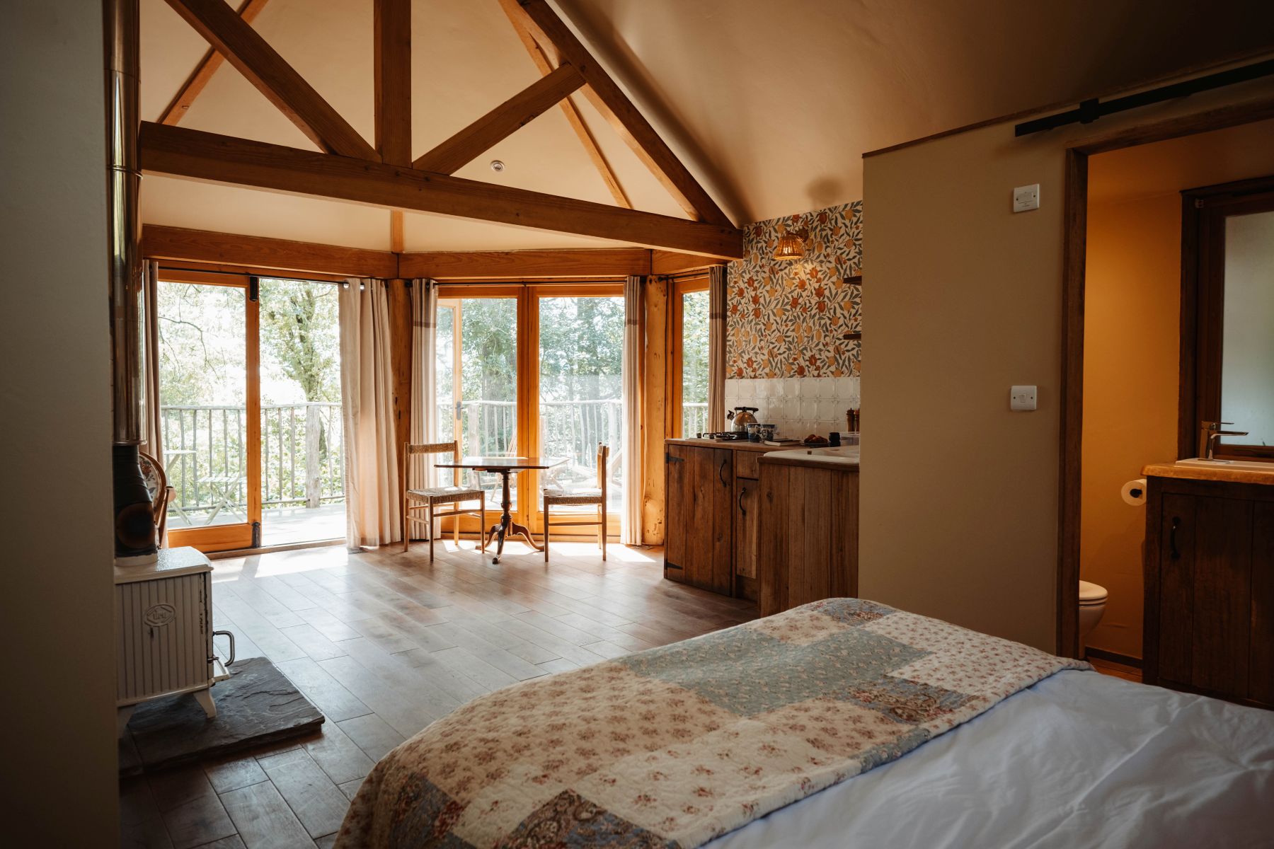 - Beautiful Bathrooms – Featuring steaming hot showers and deep bathtubs with stunning woodland views, every space has been crafted to offer a spa-like experience in the heart of nature.