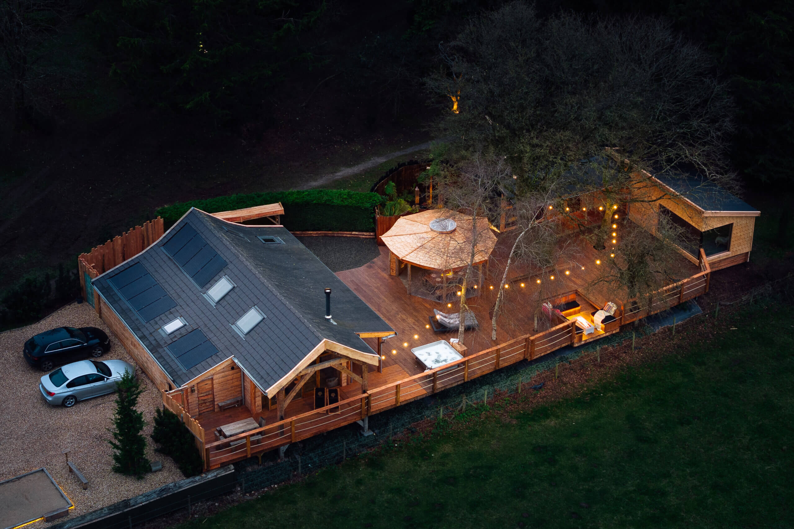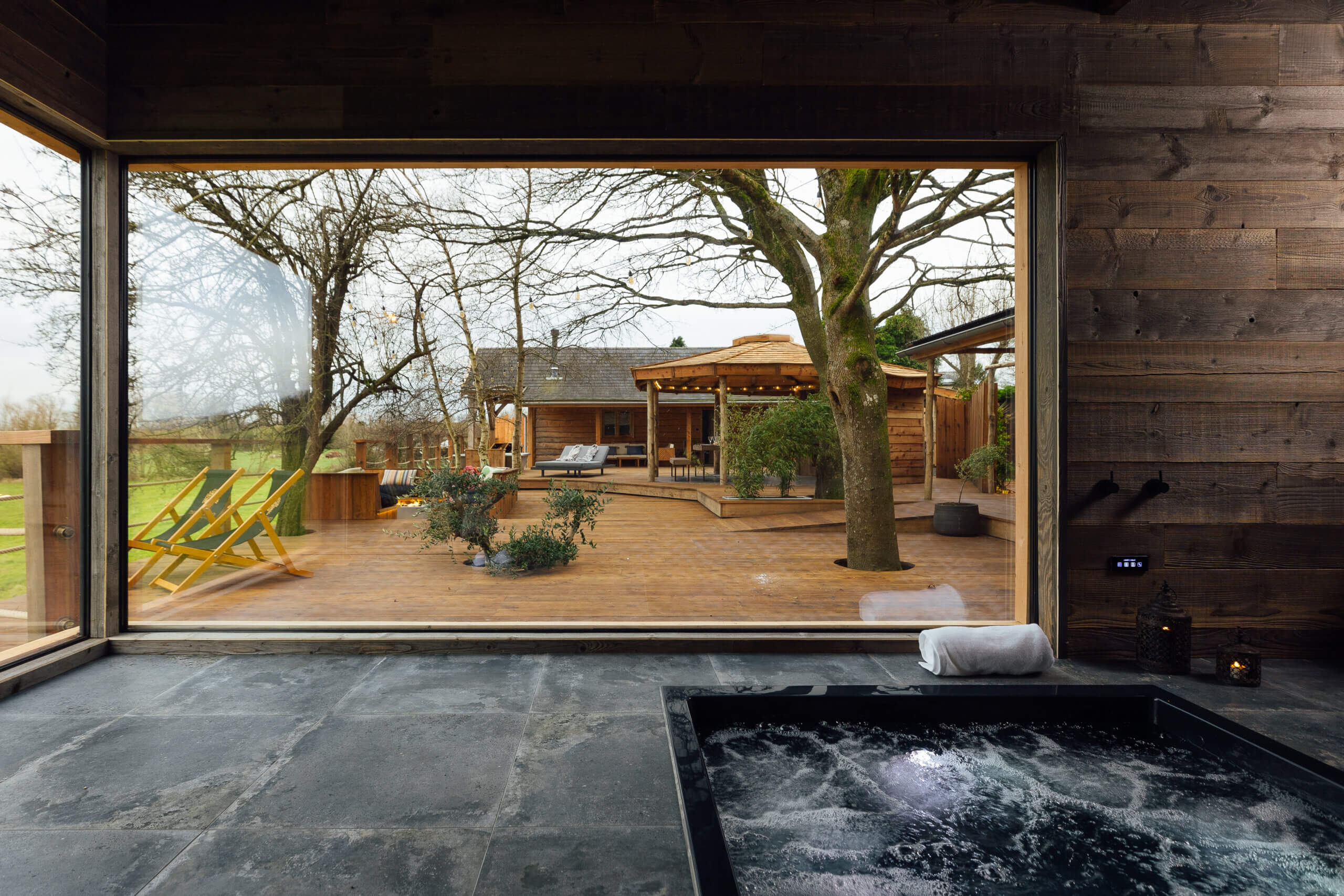 A brand new, luxurious, unique and fabulous cabin for up to six with sunken baths, sauna, outdoor kitchen and cinema room in Somerset