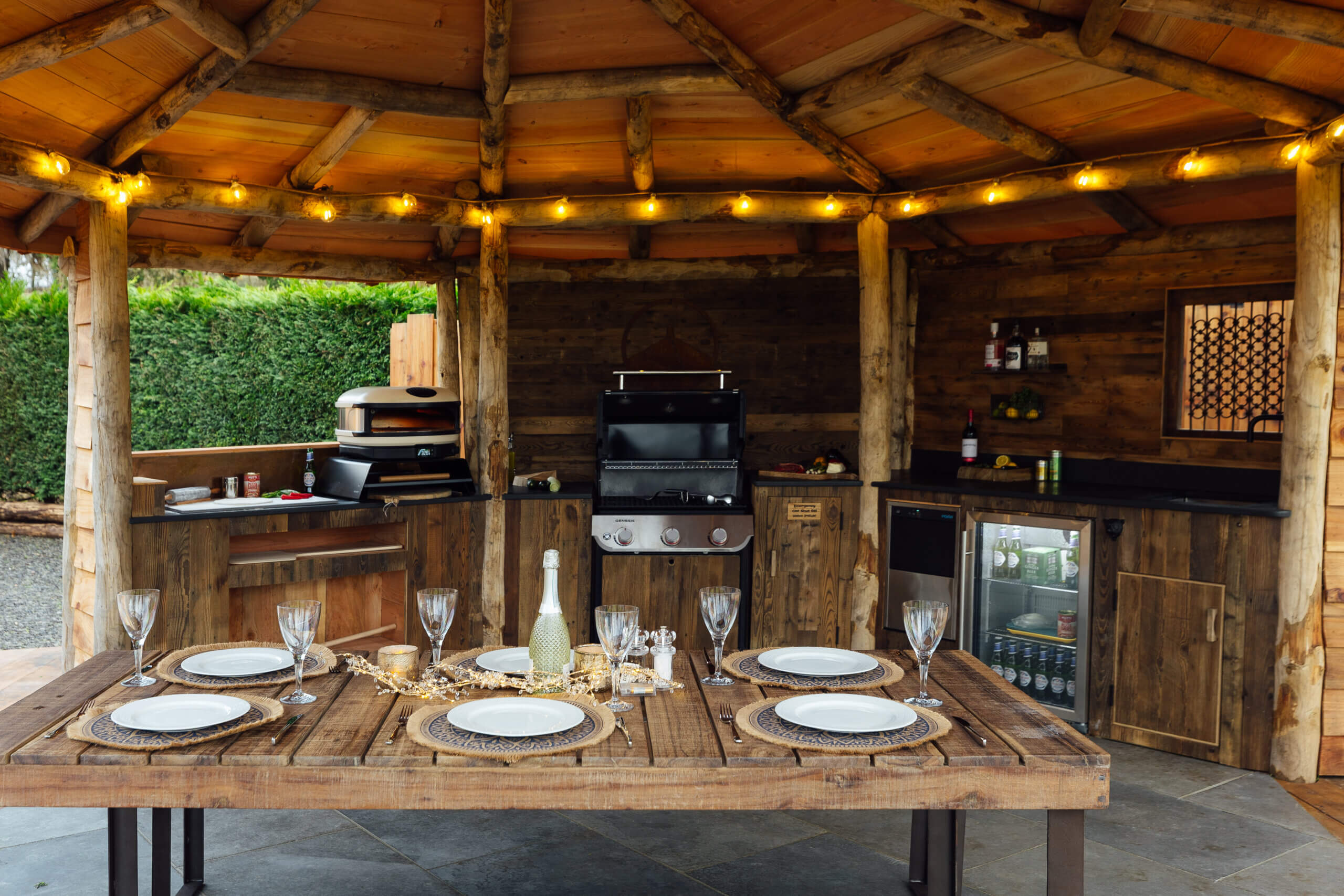 - Outdoor kitchen with and Outdoor fridge, oven, hob, Weber gas BBQ, Gozney Arc XL Pizza oven