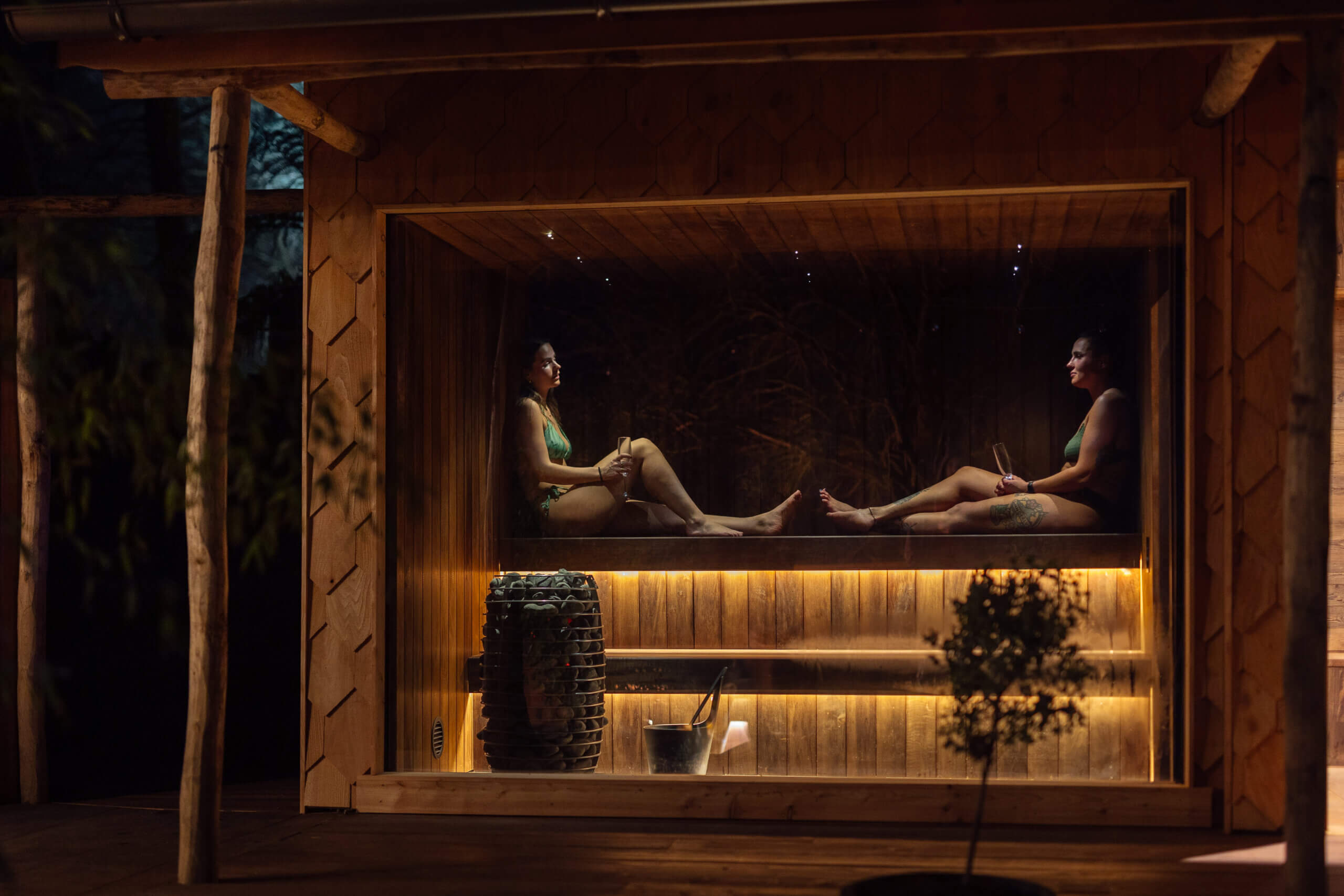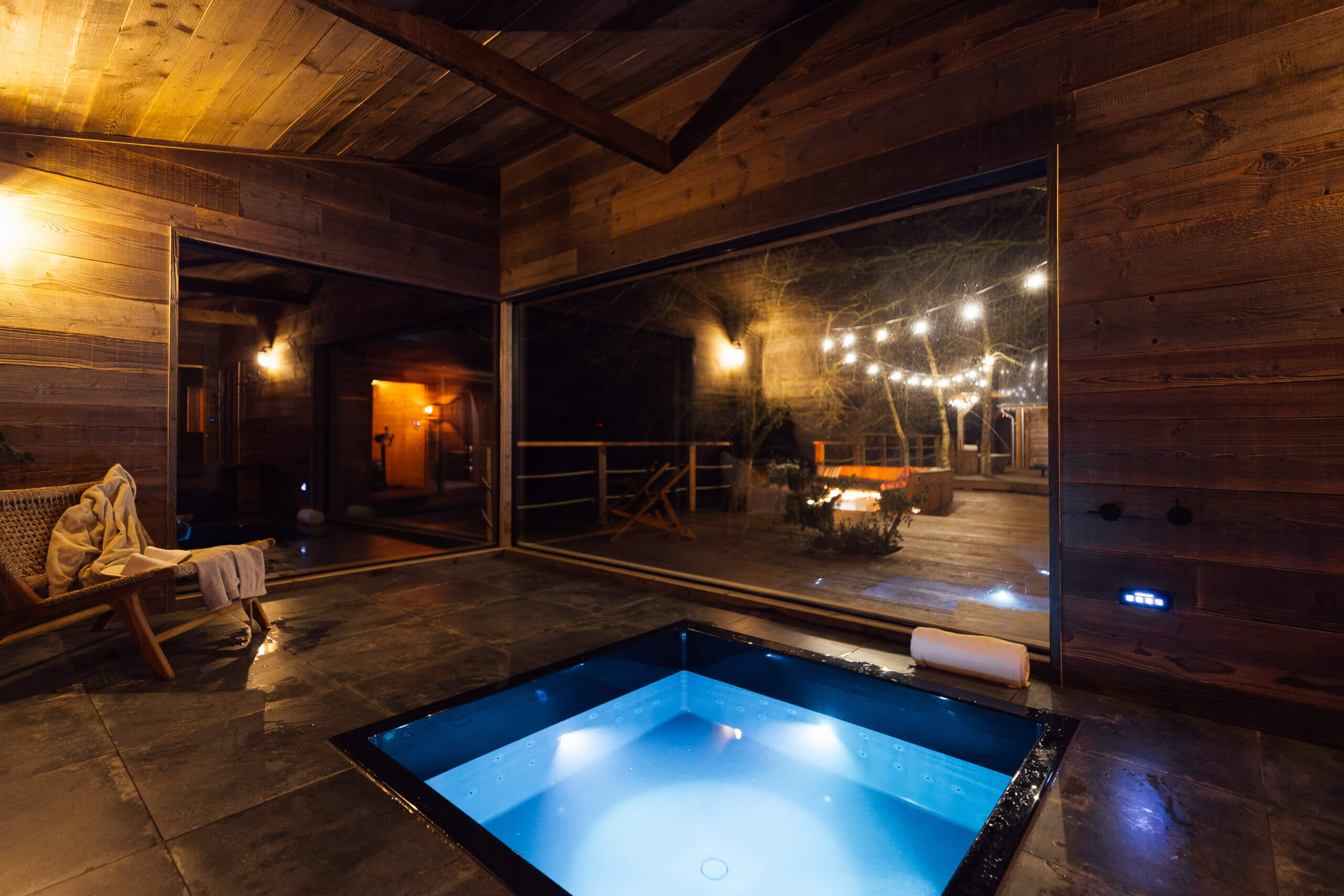 - Private indoor spa with a sauna, sunken whirlpool bath and smart TV