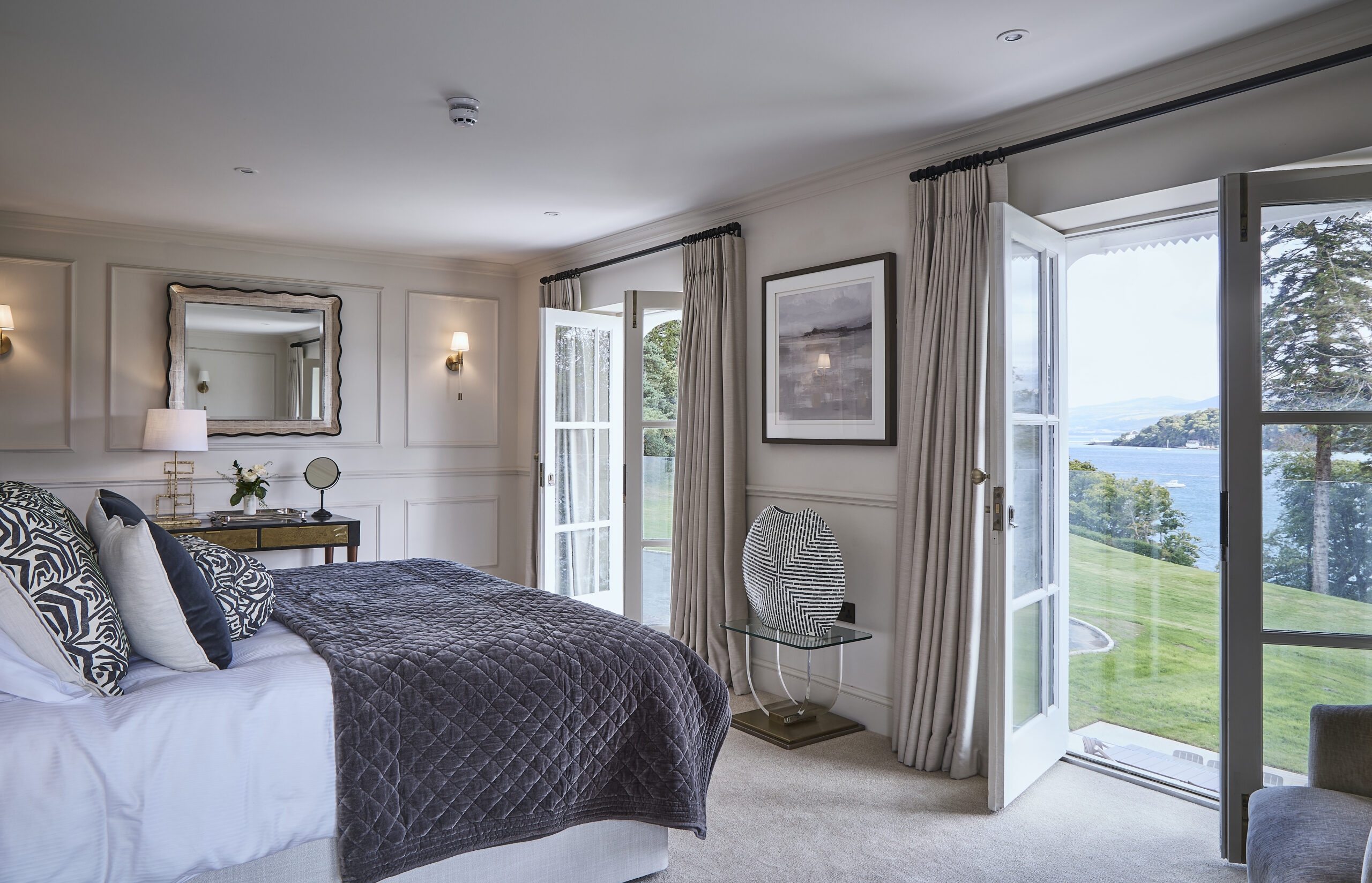Every bedroom combines classic comfort with modern touches – luxury linens, deep mattresses, and glorious views over the gardens, the Menai Straits, or the distant peaks of Eryri (Snowdonia).