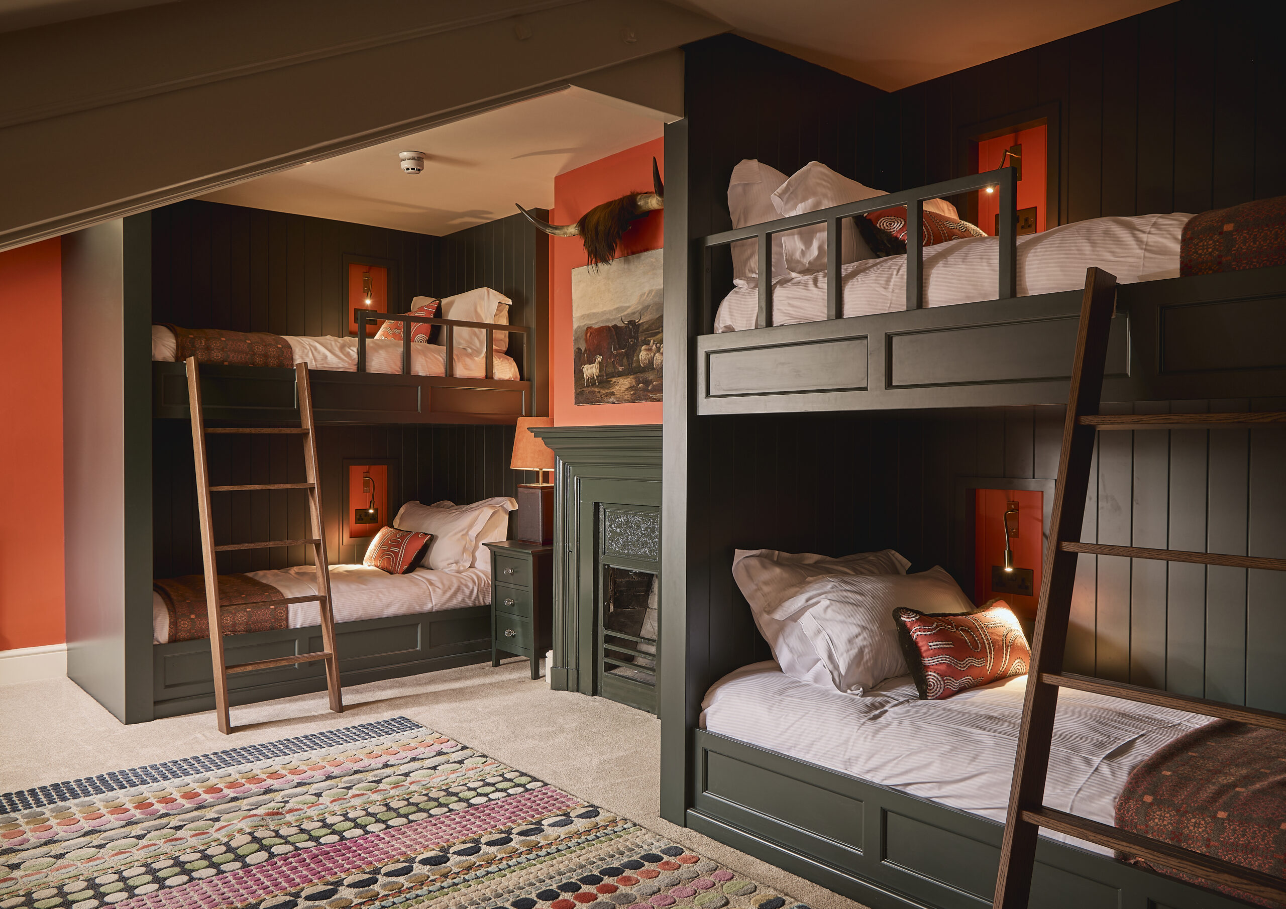 - Dragon’s Den: Two sets of full-size bunk beds (sleeps 4), perfect for children or teens; adjacent family bathroom.