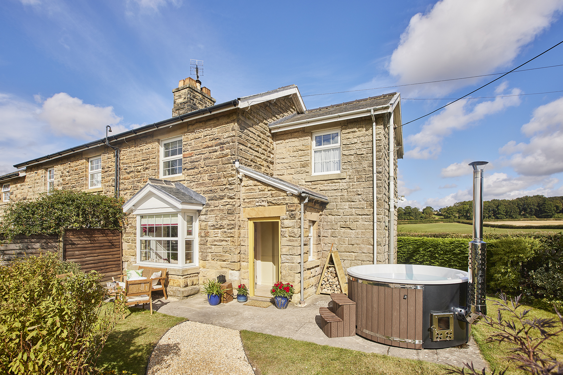 An adult-only, 2-bedroom Victorian railway cottage, with a wood-fired hot tub, private garden, dog-friendly stays, and glittering Yorkshire skies.