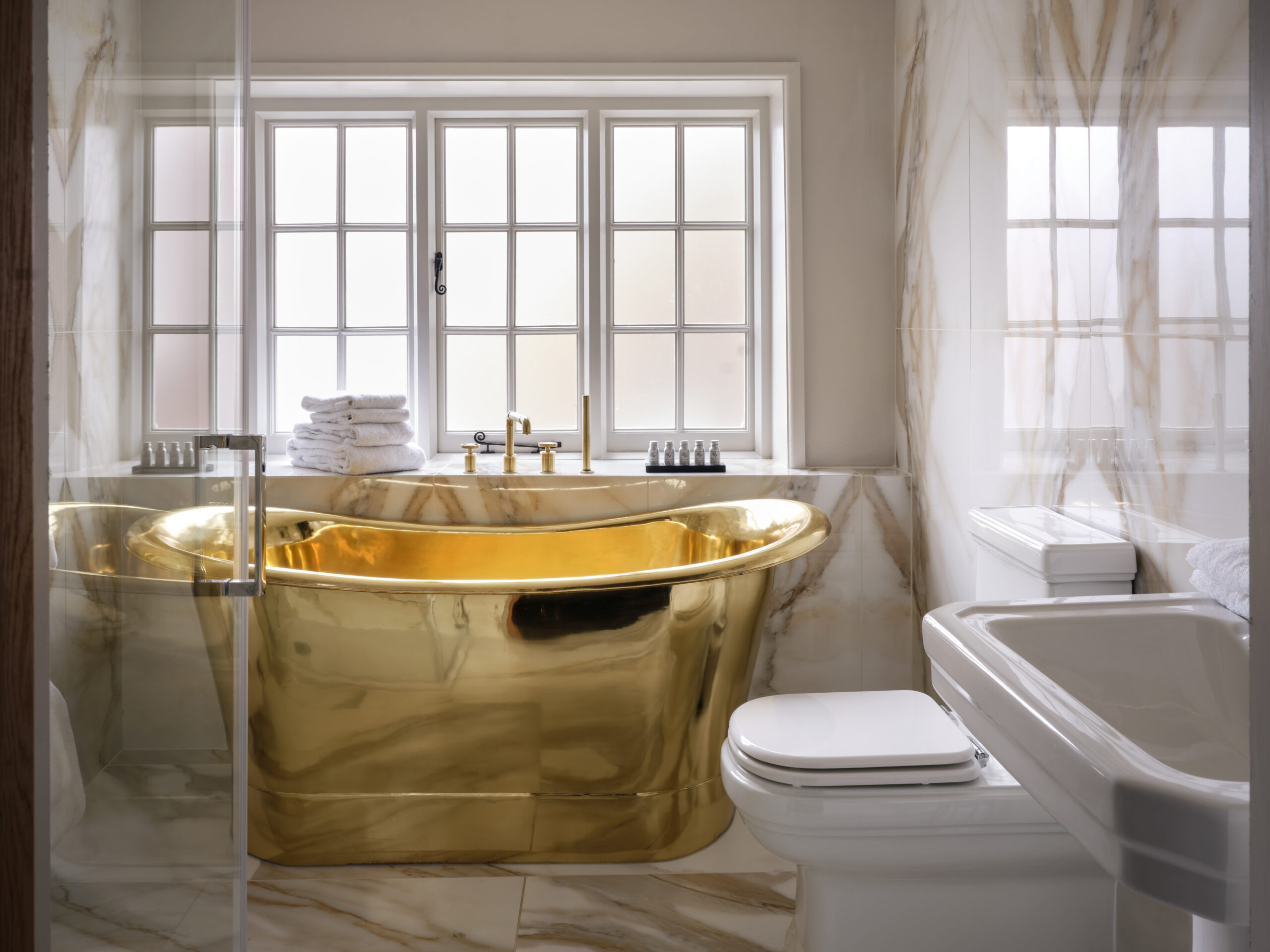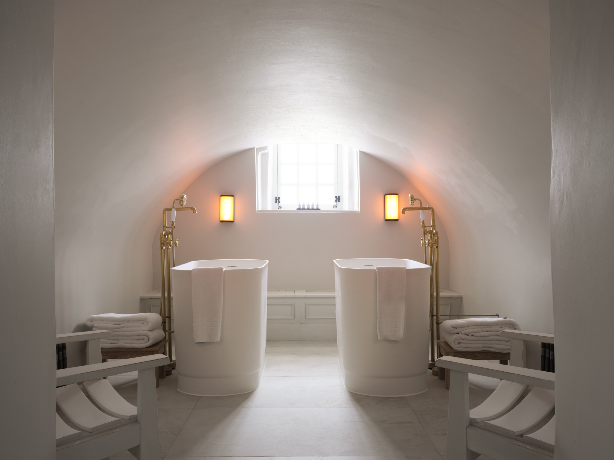 • Indulgent bathrooms with deep baths, rainfall showers and, in selected rooms, wooden hot tubs