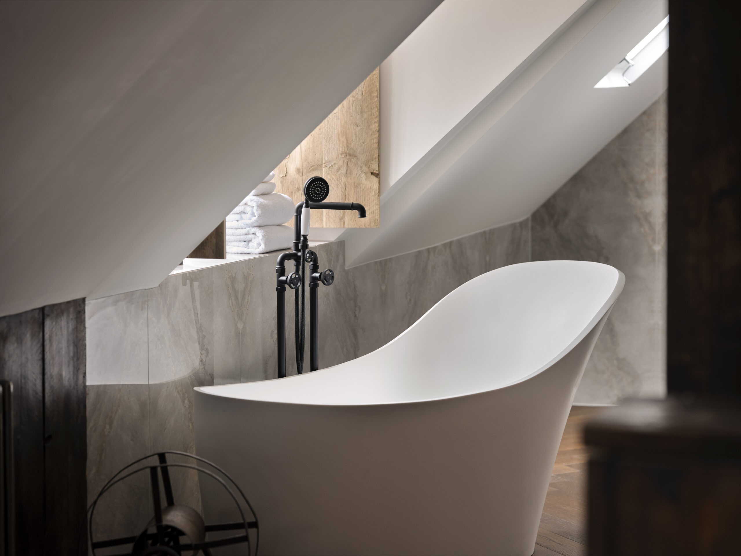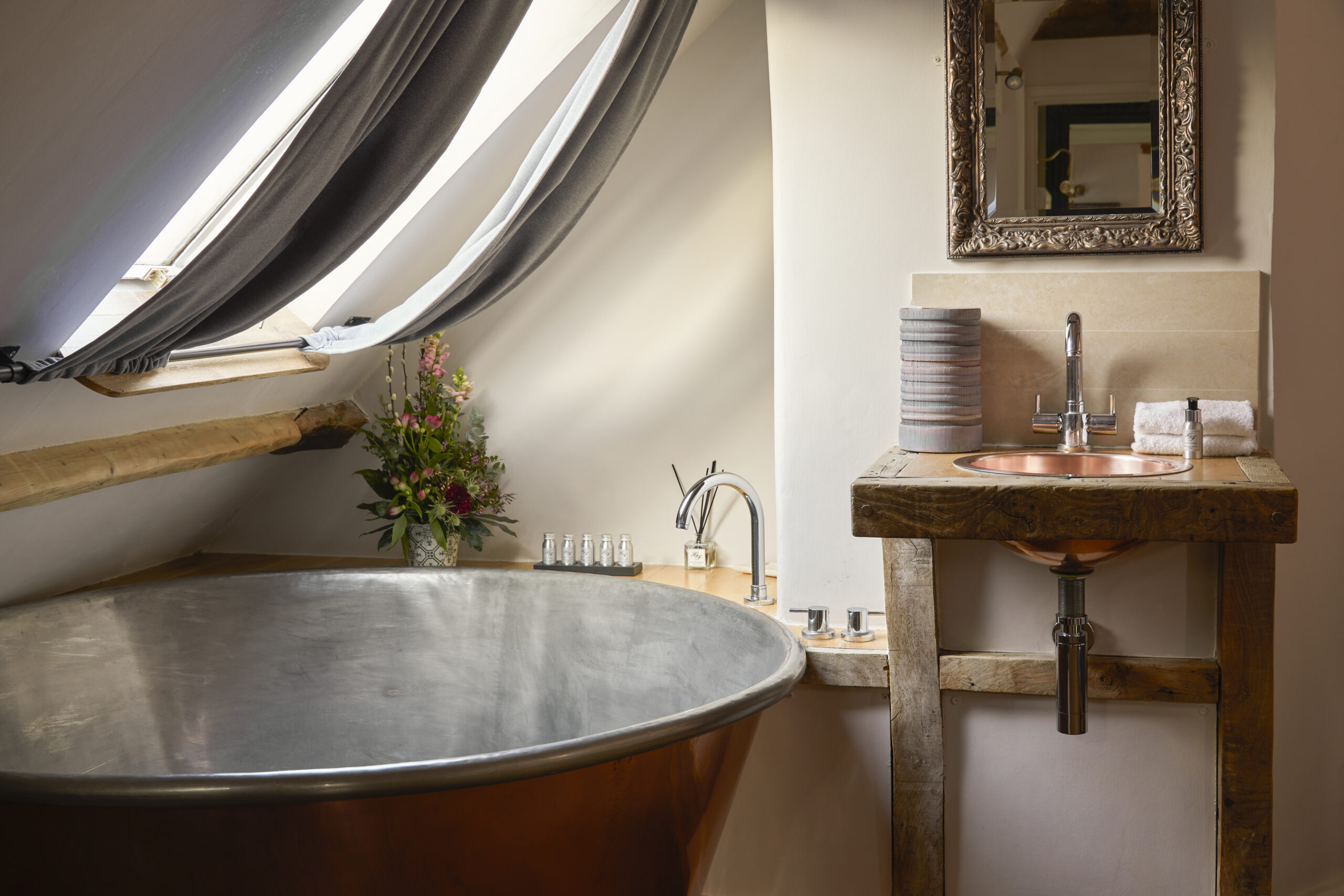 The rooms themselves set the tone: generous beds, soft light, exposed beams and bathrooms designed for lingering, with deep baths, rainfall showers and, in selected rooms, wooden hot tubs that turn an evening in into part of the experience. It’s the kind of place where time stretches naturally – where there’s no need to rush or plan too tightly.