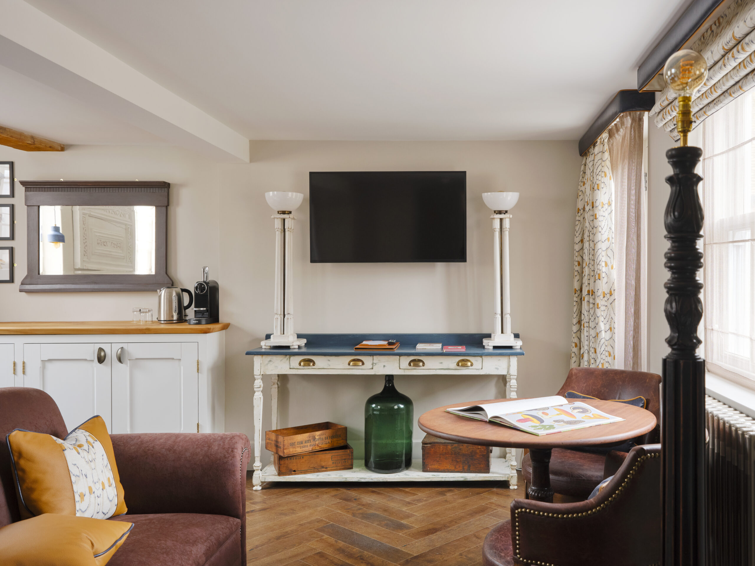 Rather than a uniform hotel style, the rooms reflect the character of the cottages themselves. Expect generous proportions, plenty of natural light and original features such as exposed beams, all paired with finishes that feel refined but never overdone.