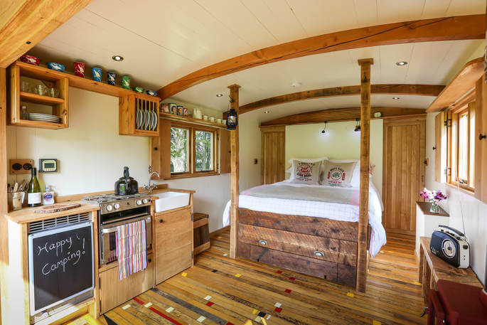 Inside, a fully equipped kitchen and en-suite bathroom adds the glam – and there are electric sockets throughout so you can stay connected.