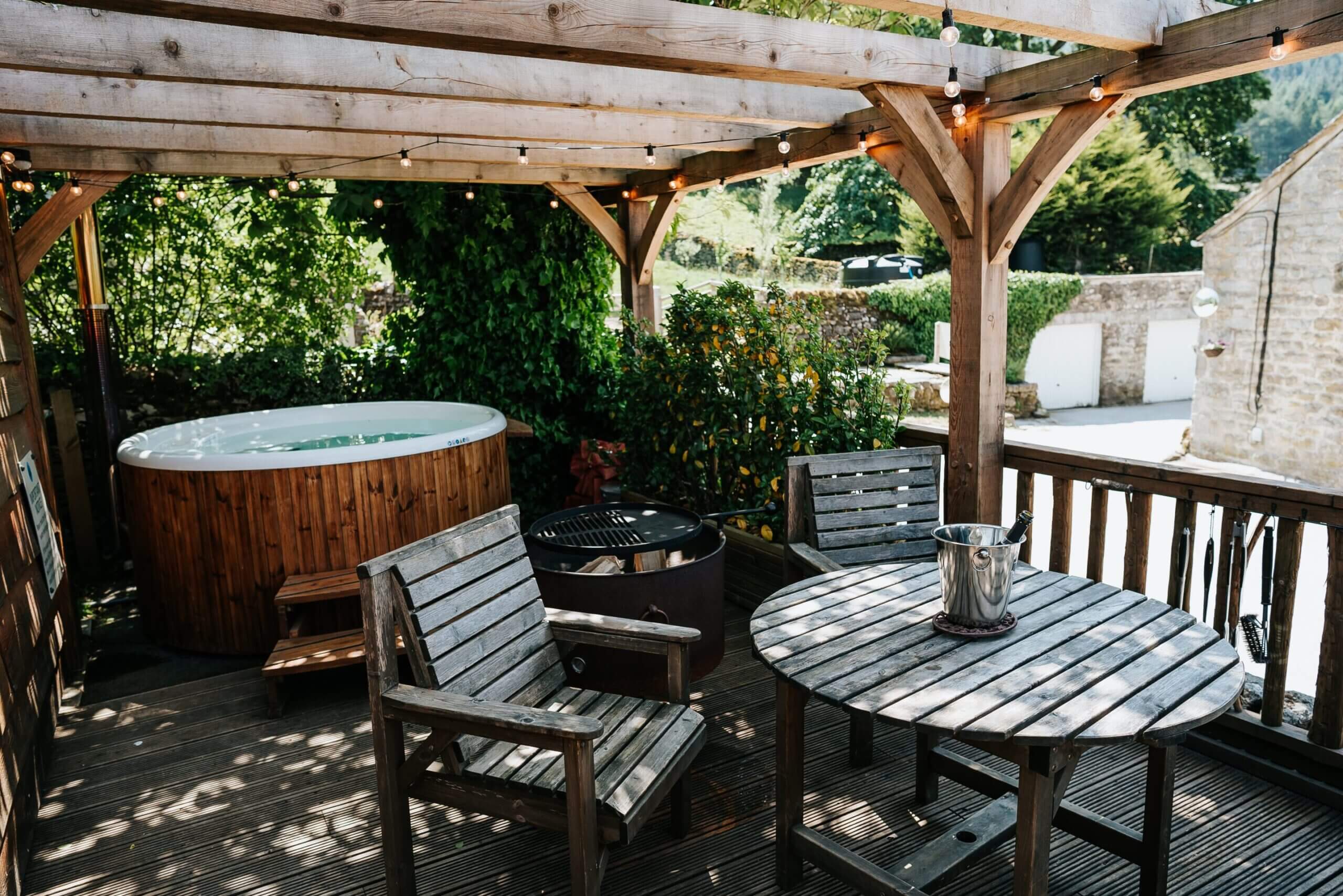 Outside, each Lodge has a private wood fired hot tub where you can completely relax and unwind in the beautiful Yorkshire Dales National Park and perhaps enjoy some bubbles watching the sun going down and star gazing below the clear night sky. On each lodge terrace, you will find a large fire pit with pizza oven and garden furniture for alfresco dining.