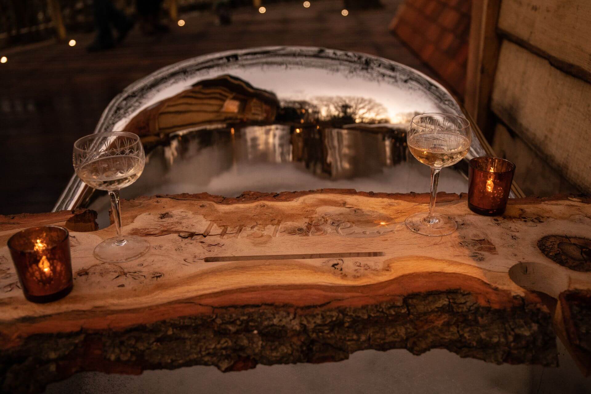 As the sun sets, wander along a mysterious woodland track to your own private bar – The Lookout Bar has jaw-dropping views across the valley – the perfect place to renew your vows or get down on one knee and pop the question!