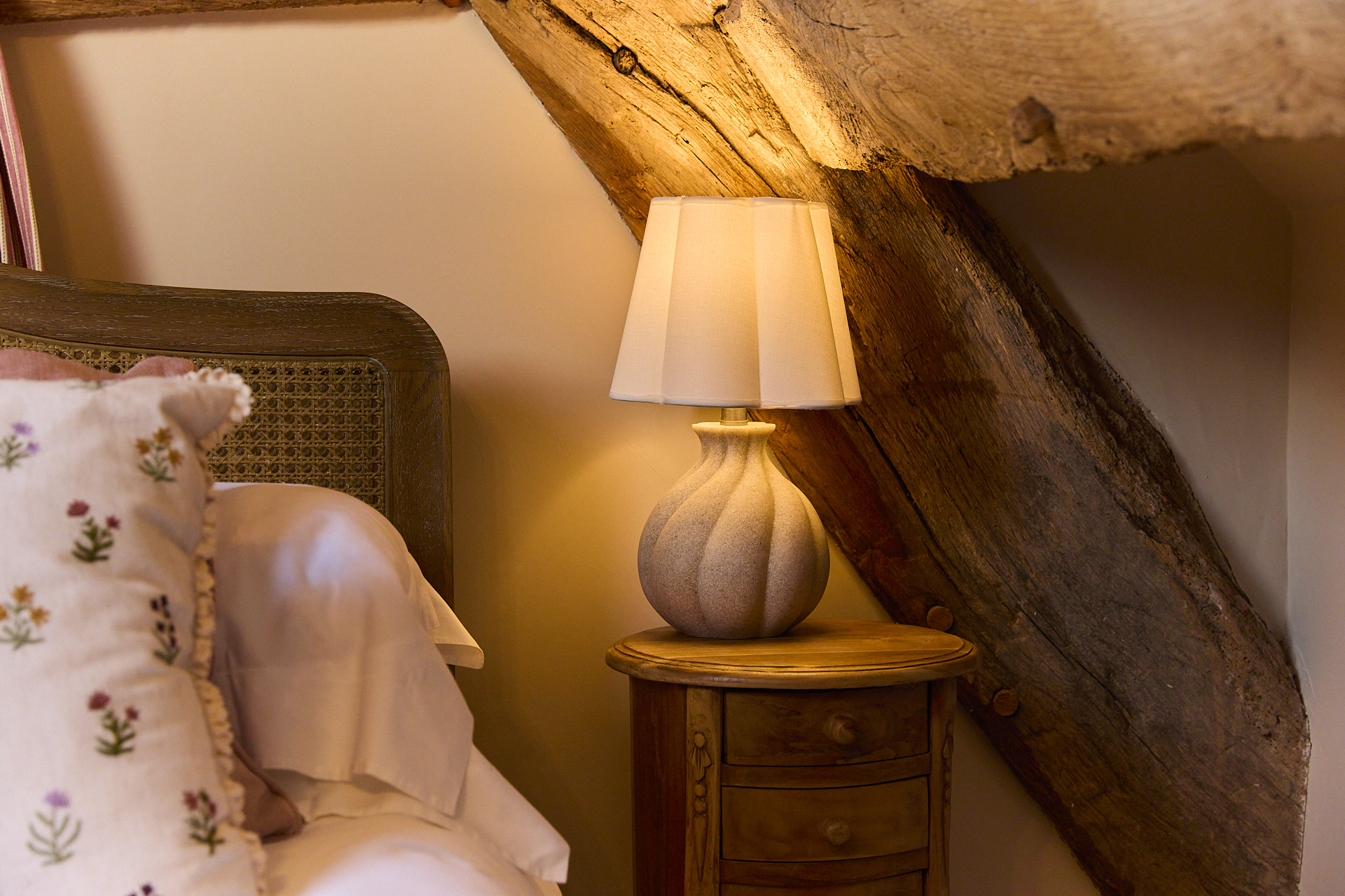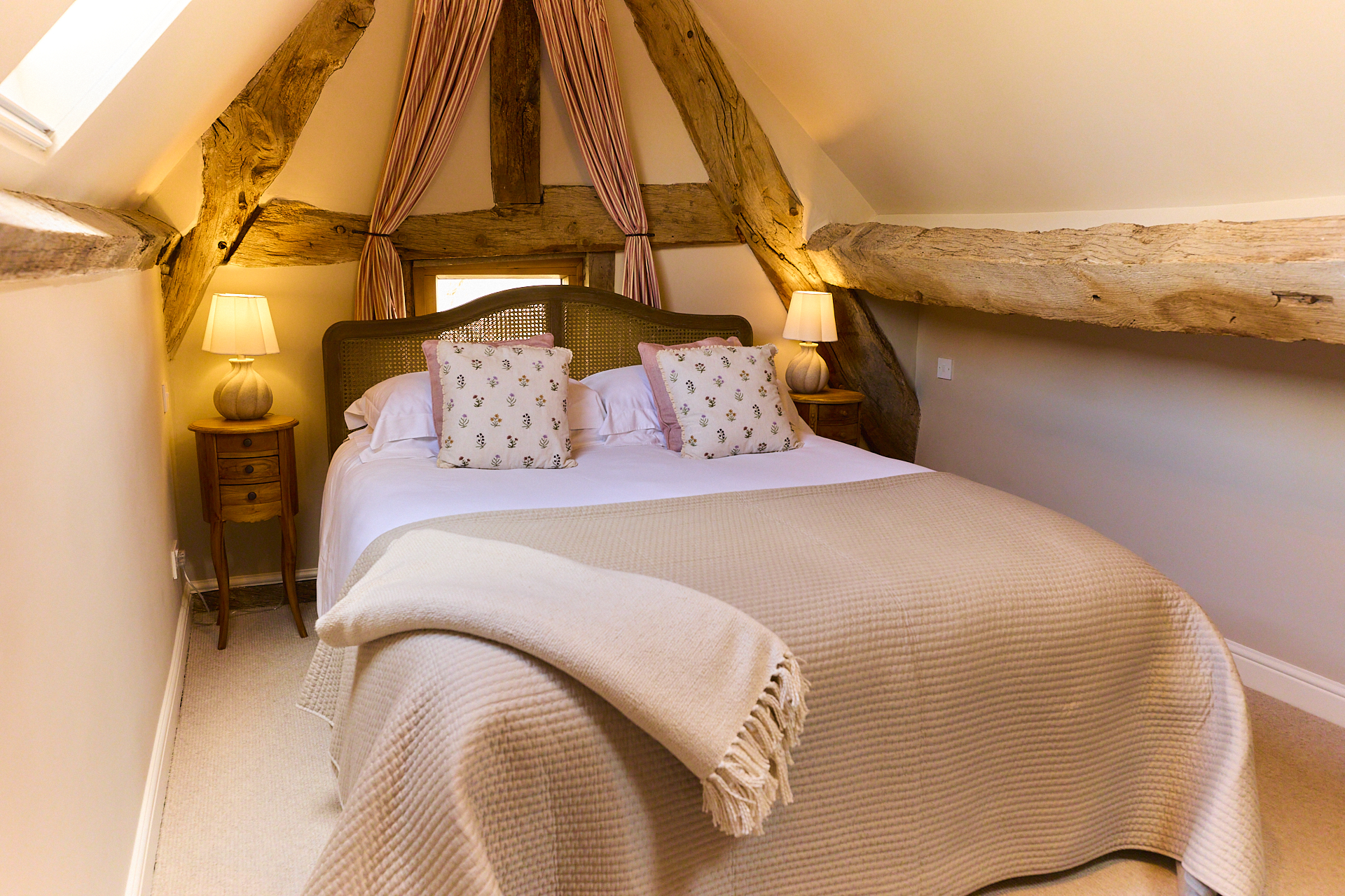 The Barn is the largest of the three cottages, offering plenty of room to gather while still feeling comfortable and relaxed. Original beams and timber framing run throughout, giving it a sense of history without taking away from the ease of the space.