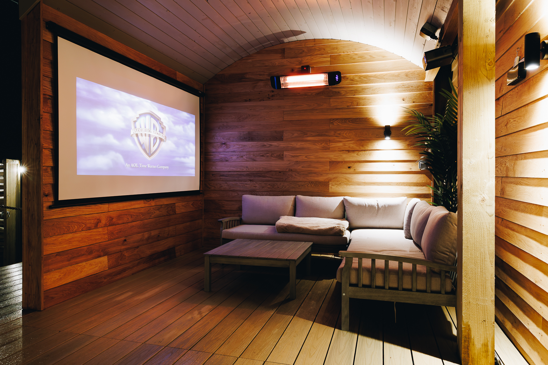 - Outdoor cinema with large Smart TV and comfortable sofas