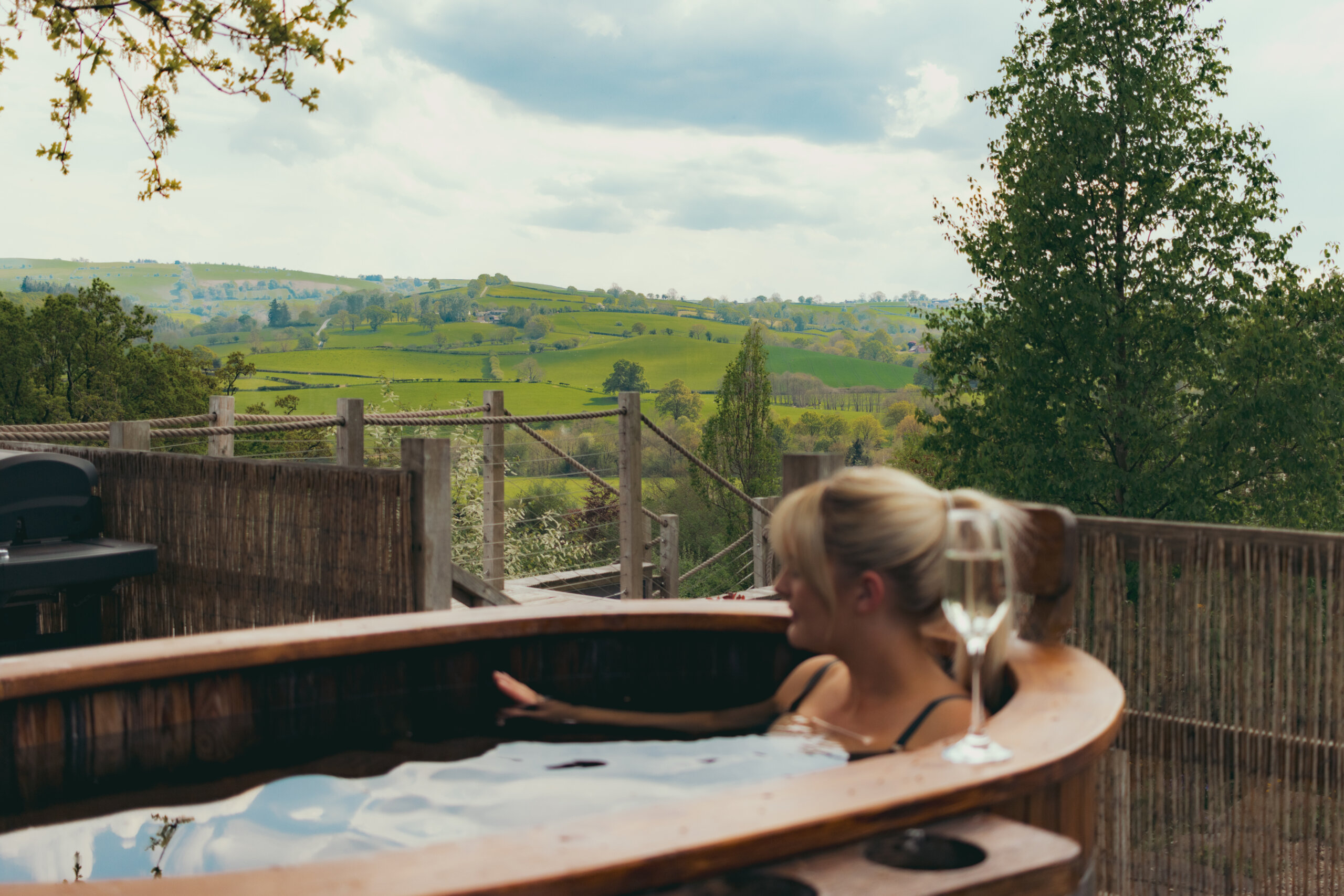 Outside the Safari Tents, Foxglove and Blue Bell have their own Private Hot Tubs