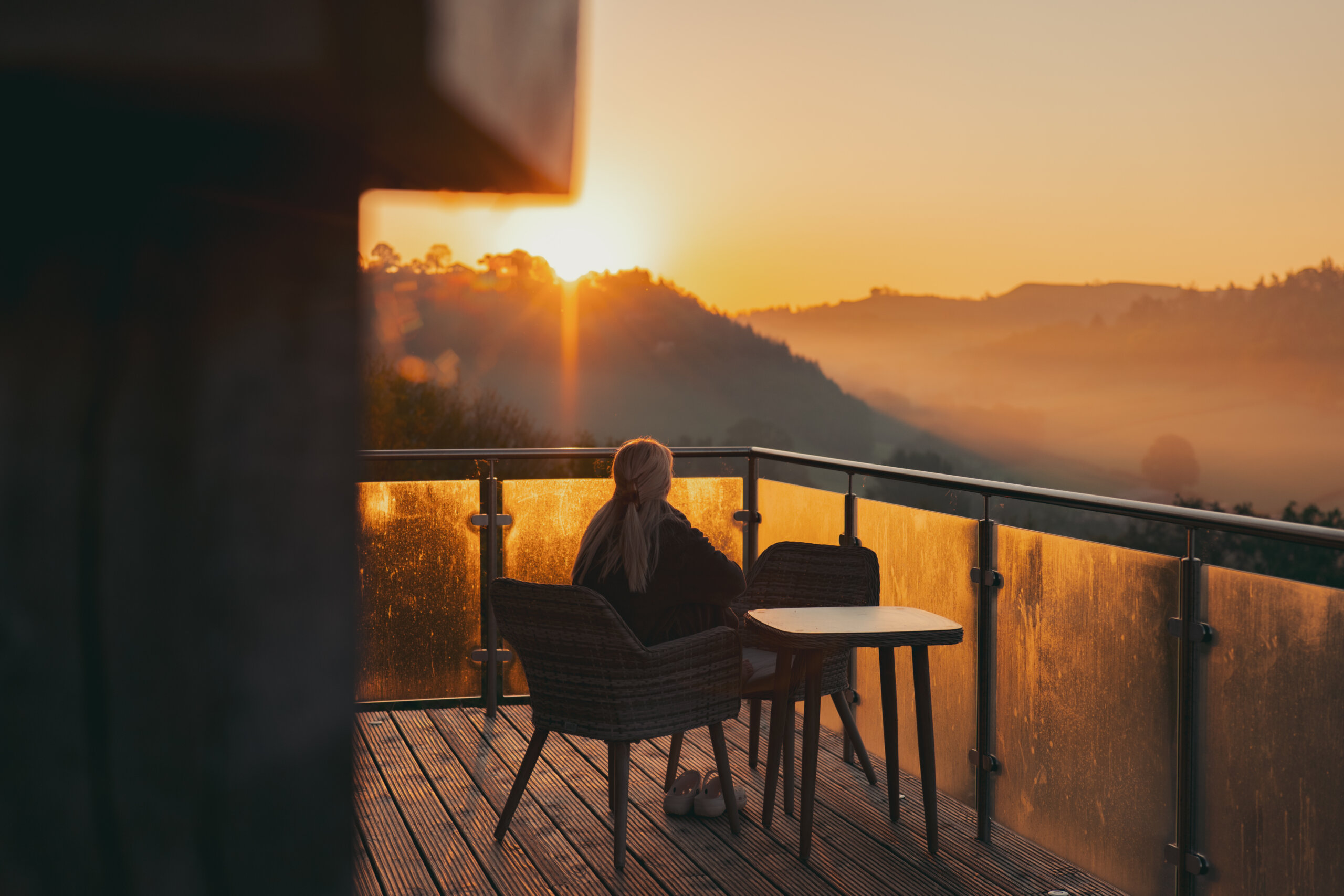 The treehouse balcony has a beautiful glass balustrade and gas BBQ. There’s also a cosy firepit area just down from the main balcony, with seats to relax, chill and enjoy the sunset. This adults only treehouse retreat really is the perfect destination for romantic getaways and a relaxing holiday.