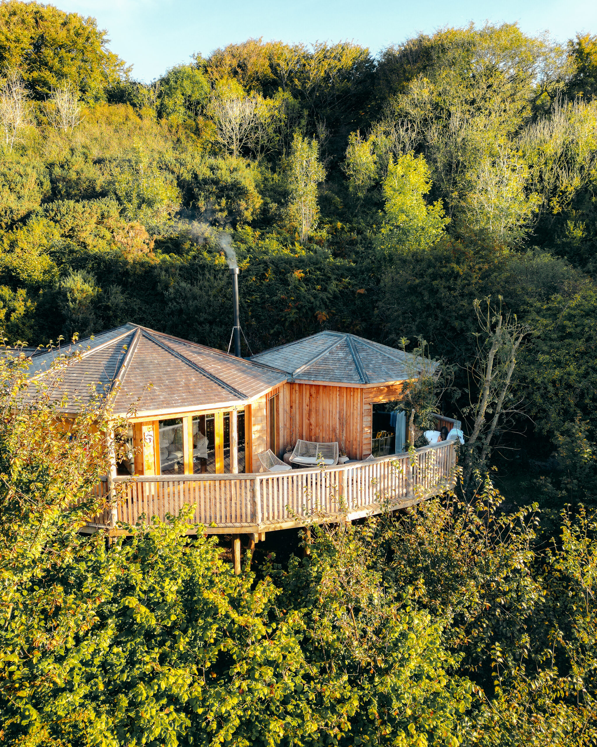 Outside, the treehouse opens onto a private deck that’s as much a part of the experience as the interiors themselves. Surrounded by woodland, it’s a space designed for lingering, unwinding and making the most of being outdoors.