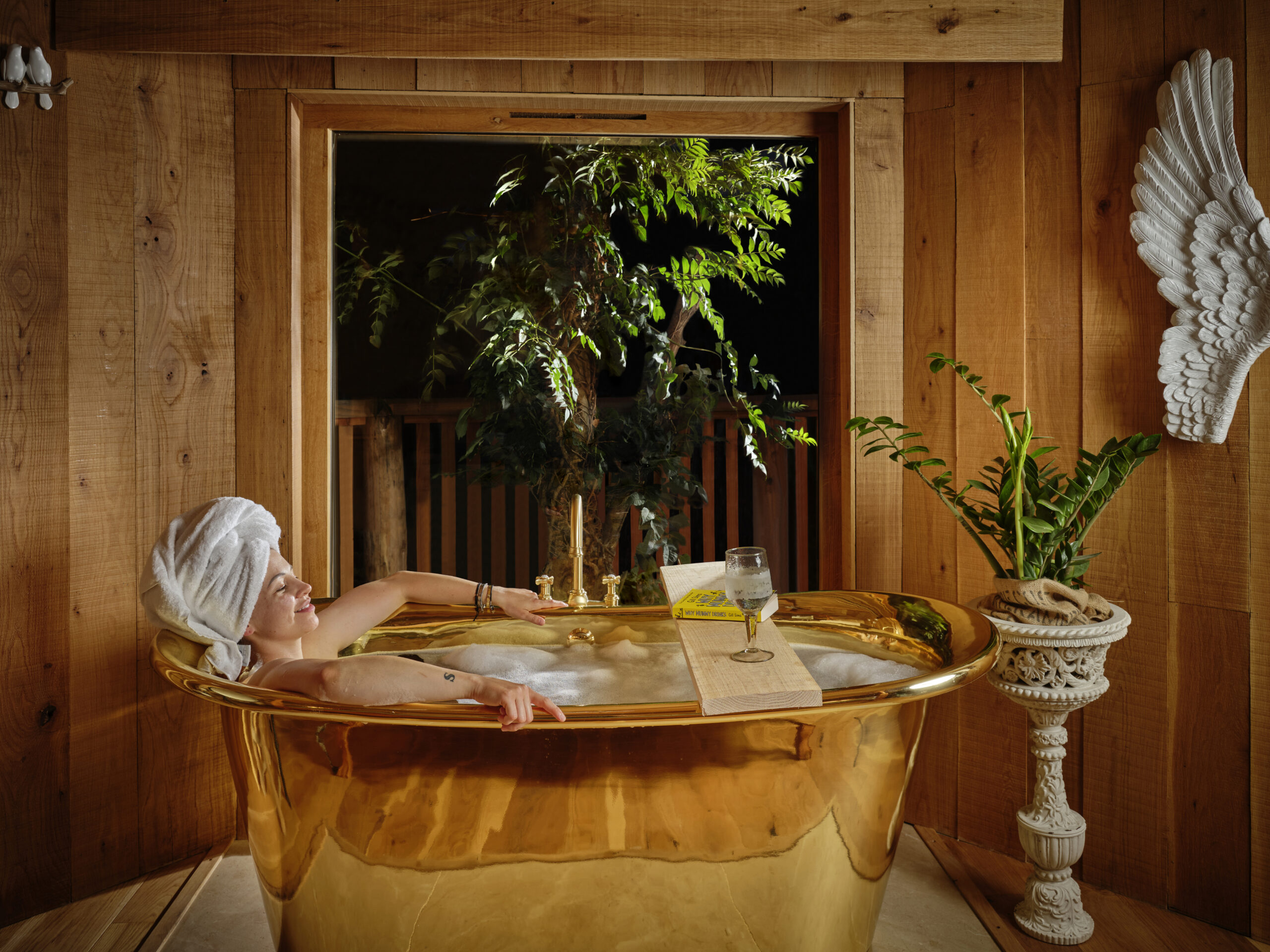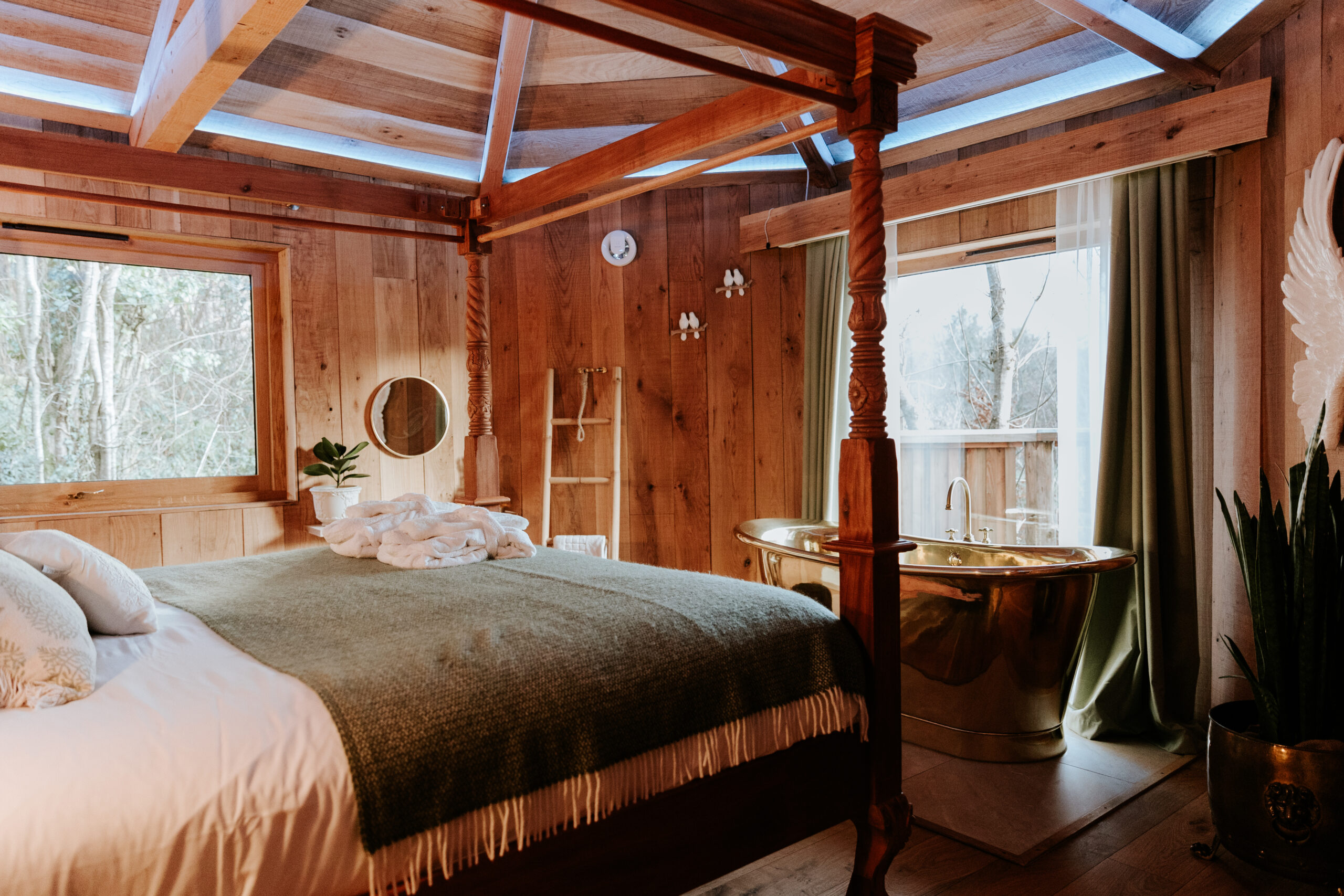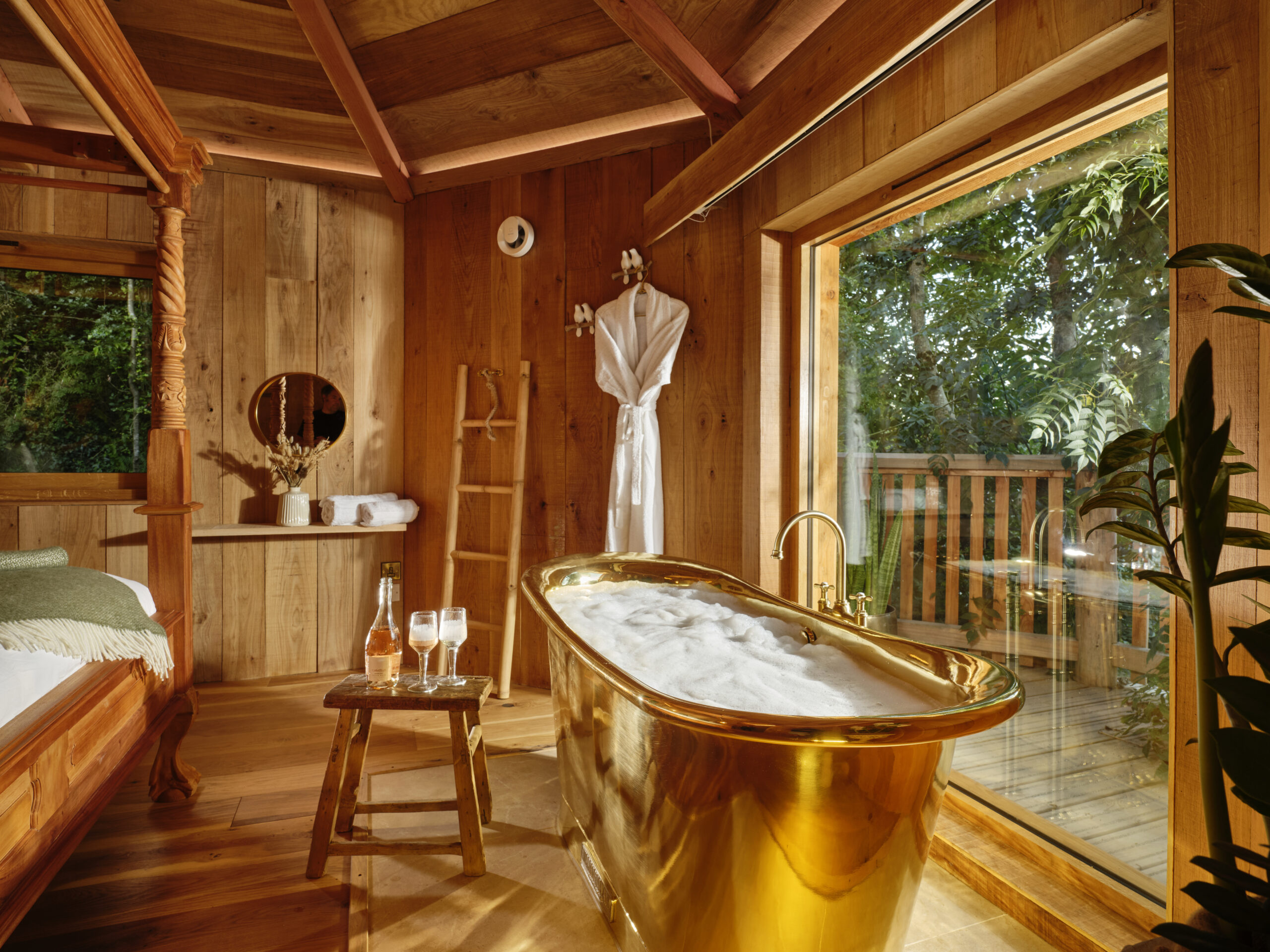 • A handcrafted treehouse with a gold roll-top bath in the master bedroom, complete with snuggle robes and carefully selected luxury touches
