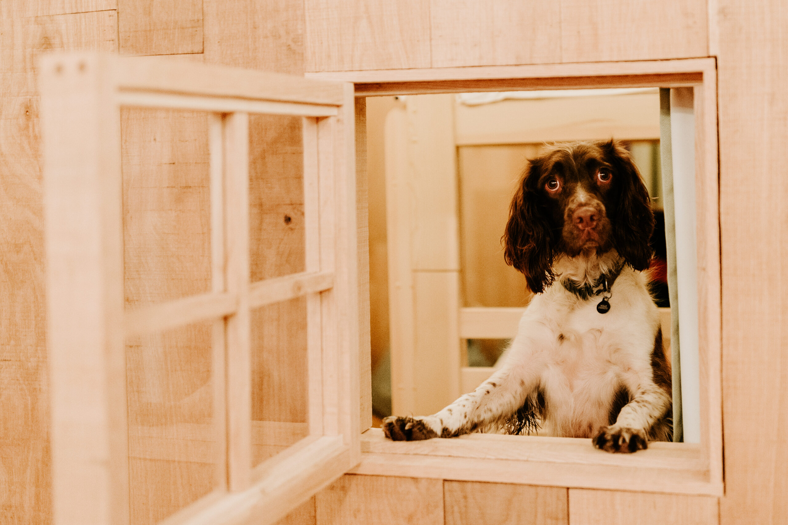 Dogs are provided with bowls, treats, toys, blankets, towels and a dedicated bed, along with a dog bath for muddy paws after woodland walks. A light-up collar is included for evening adventures, and the terrace is gated for added peace of mind. With woodland, meadows and riverside paths right on the estate, daily walks can begin straight from the door.