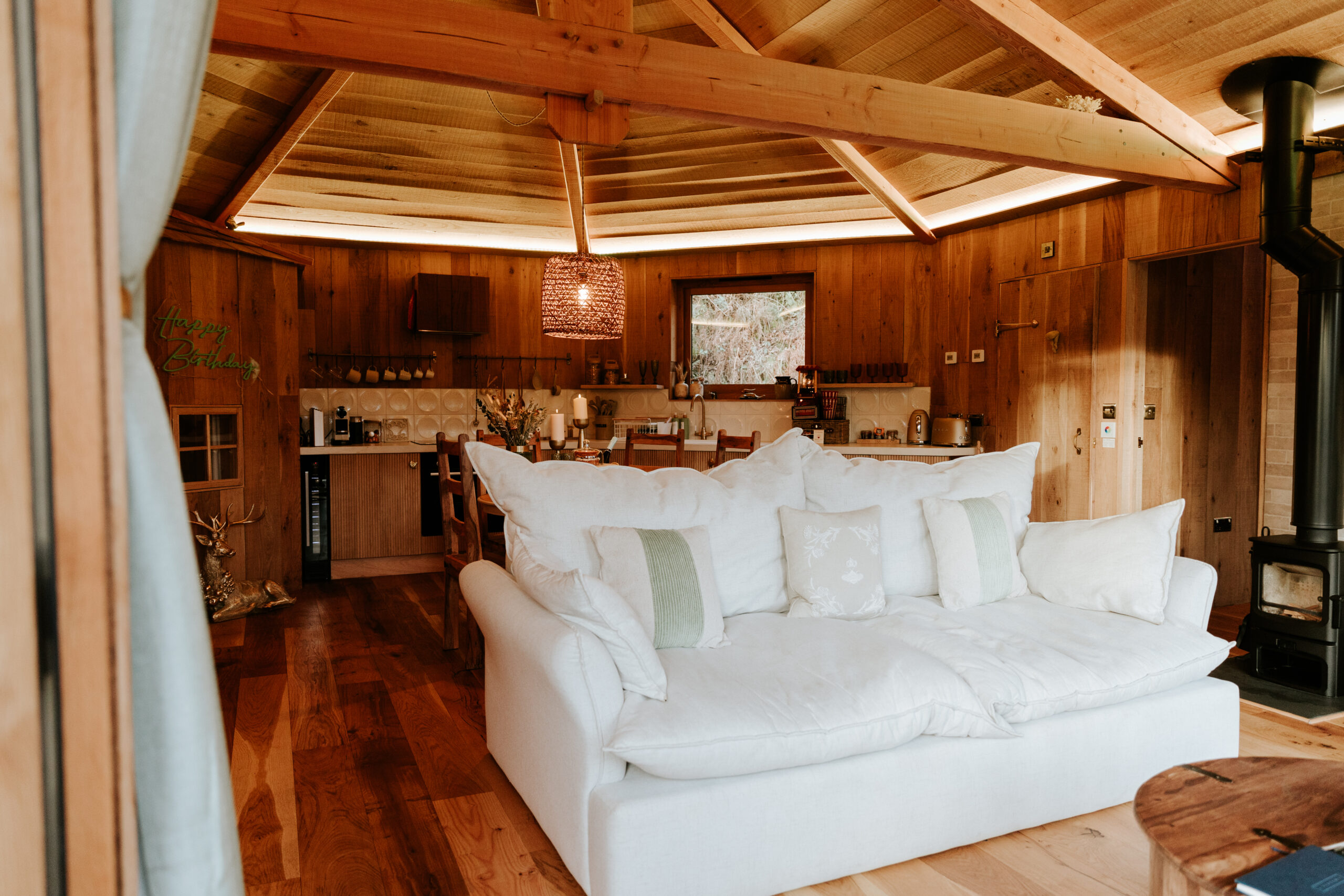 The Nest Treehouse is designed to feel both special and easy to live in, with every detail carefully considered and nothing feeling overdone. Natural materials, soft lighting and designer interiors create a space that feels warm, cocooning and quietly luxurious.