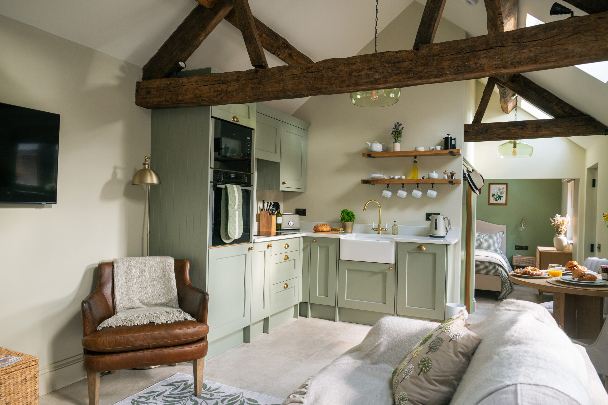 Stableside has been thoughtfully converted from the original tack room, blending rustic touches with a calm, contemporary feel. Muted greens, soft textures and exposed beams create a soothing space to retreat to after a day outdoors.