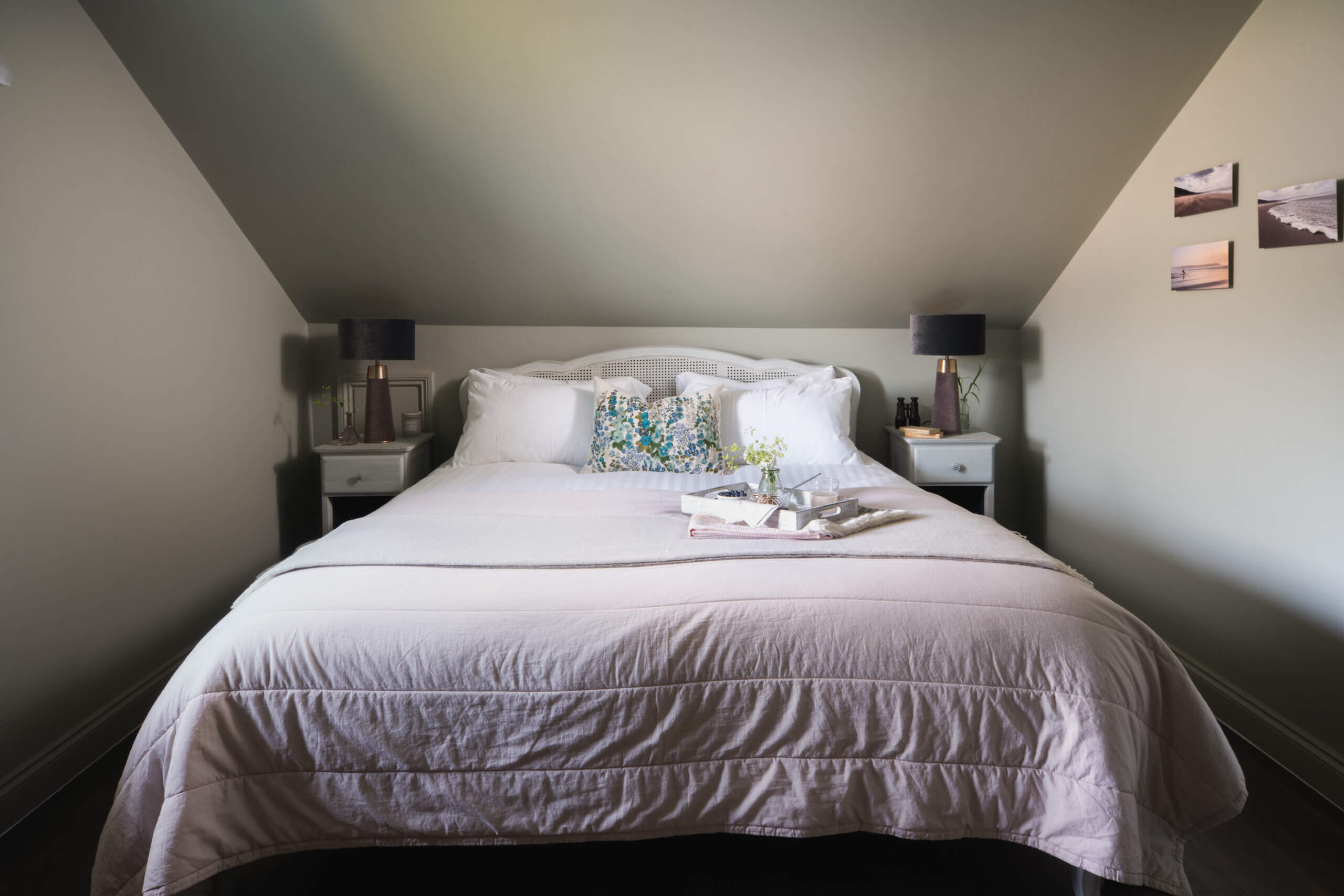 - Upstairs are two spacious bedrooms sleeping 4 guests both with ensuite bathrooms. The master bedroom has a super king bed and the ensuite includes a bath and shower. The second bedroom offers the option of either twin beds or a super king bed with a shower in the ensuite. The two bedrooms are tastefully decorated in muted tones and offer panoramic views across Lee Bay.