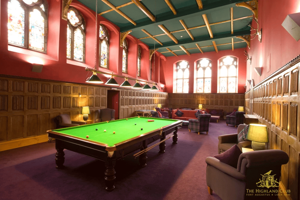Relax in the stunning indoor swimming pool and spa area including steam room and sauna, or get together with friends to play in the snooker room in the Highland Club lounge – we’d call this the games room, or have a game of tennis or croquet with stunning views of Loch Ness and the Highlands around you.