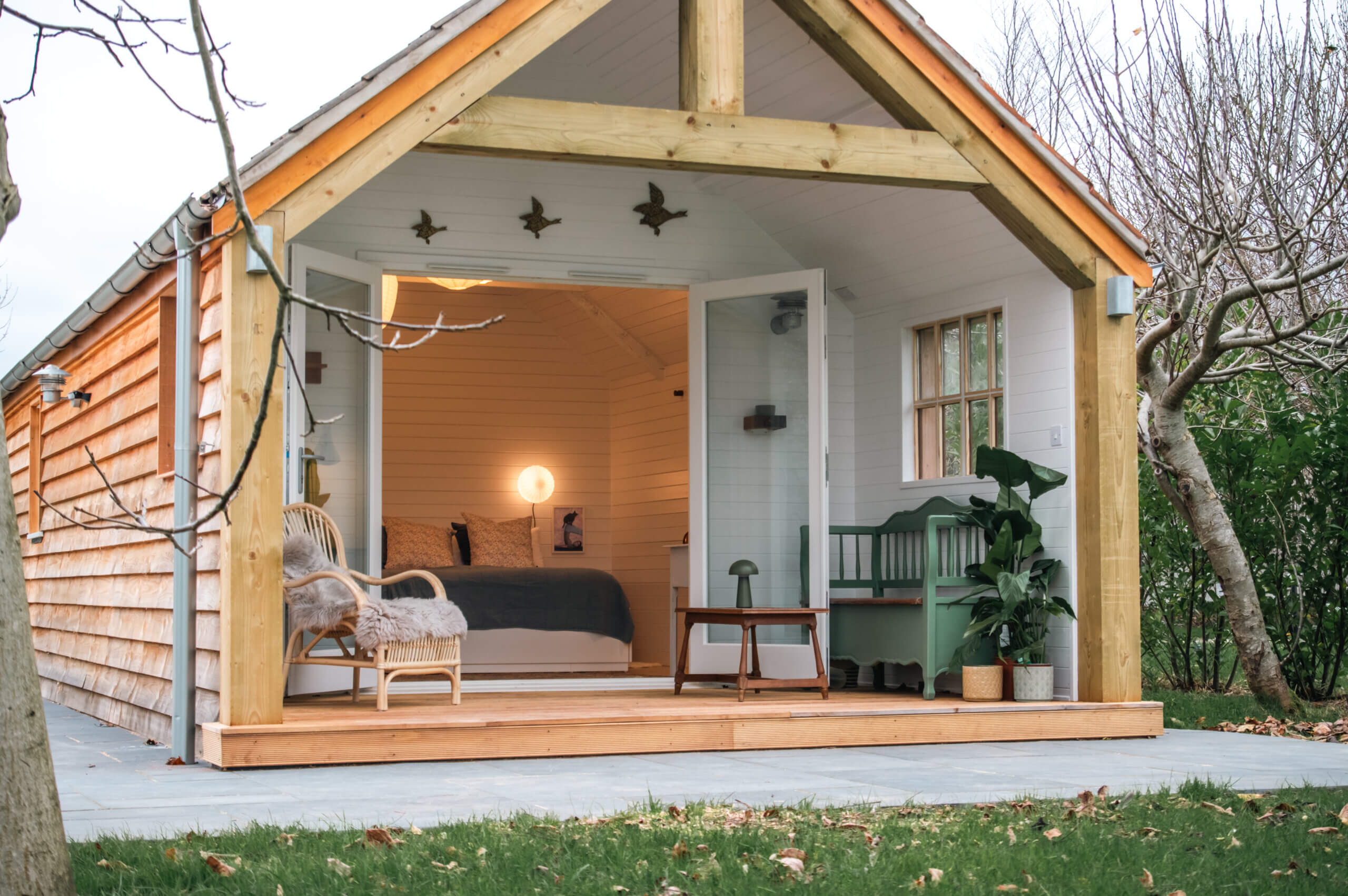 We love the romantic retreat, The Duck House, which overlooks the lake. It’s a cosy and romantic space with a double bed, kitchenette and bathroom. Beautiful French doors open up to a wooden veranda and into the orchard.