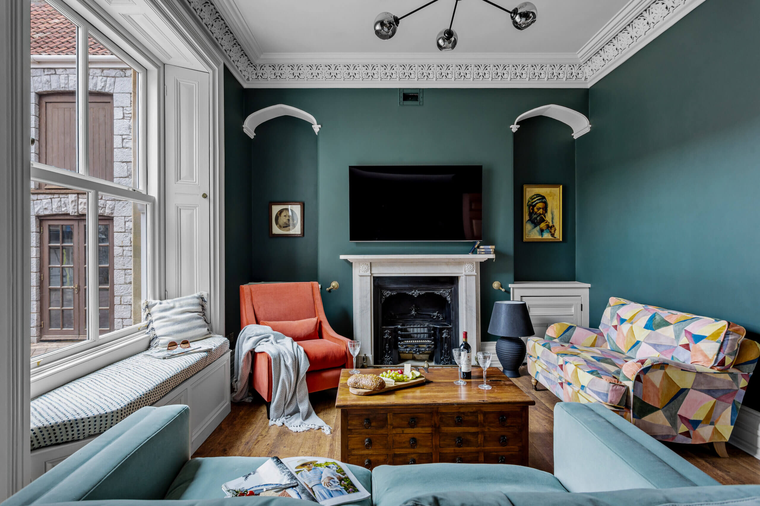 In the courtyard, The Coach House has been designed with a retro chic feel, with a master bedroom, a small double bedroom and a sofa bed in the sitting room, with family bathroom and contemporary kitchen.