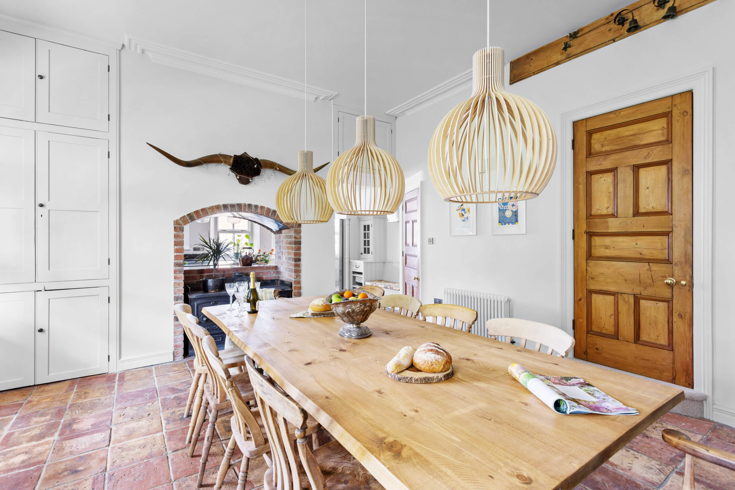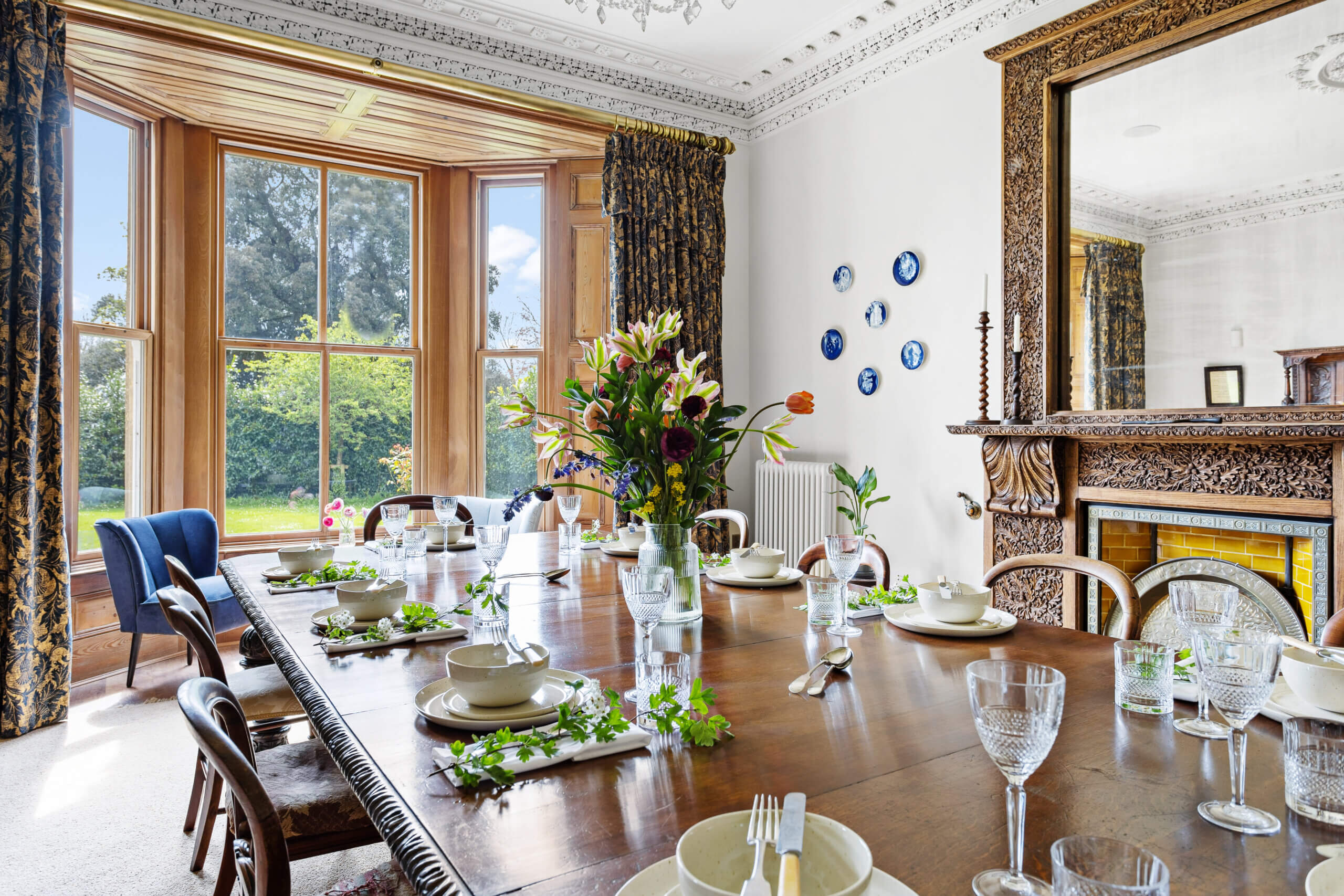 - The next door breakfast room, with the original servant bells above the doorway, has seating for 10, ideal for family meals and gatherings.