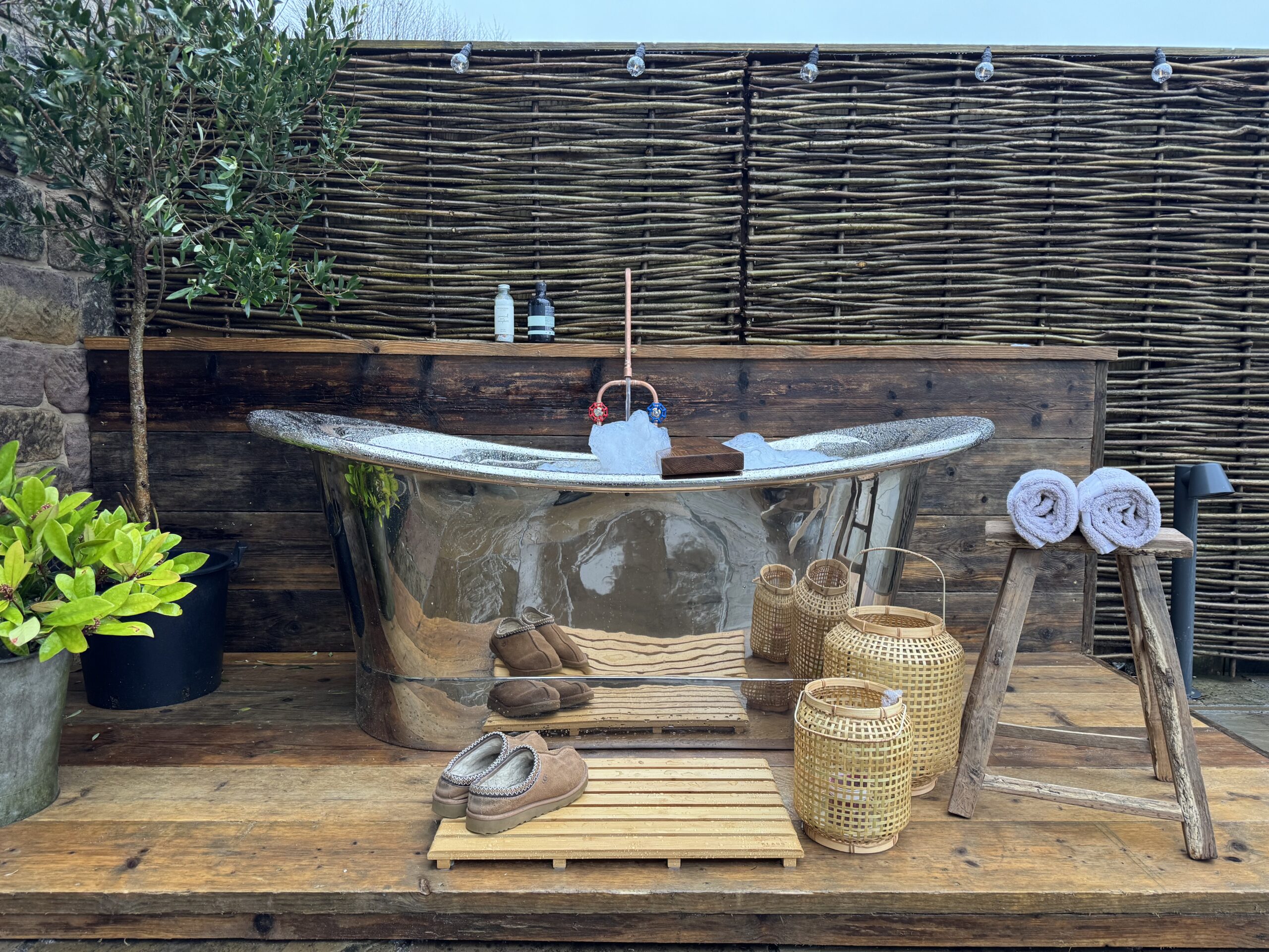 - A copper outdoor bath — Reset with the open sky above, day or night