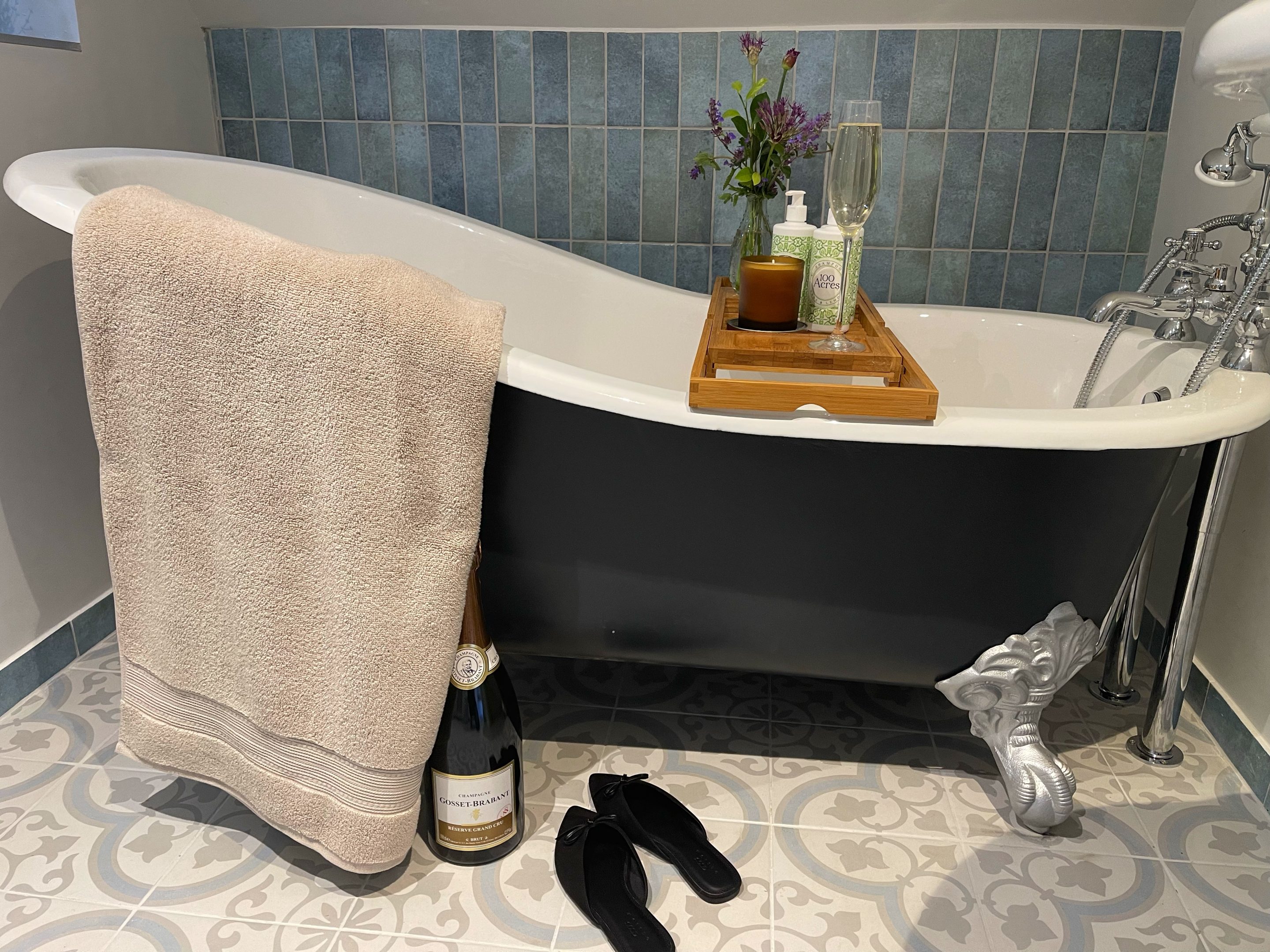 Owner Julia has spent a lot of time making this a stunning retreat but also perfect for relaxing in. The large master bedroom in the eaves of the barn has a king-sized Loaf mattress with ensuite bathroom, walk in shower and a traditional cast-iron bath tub.