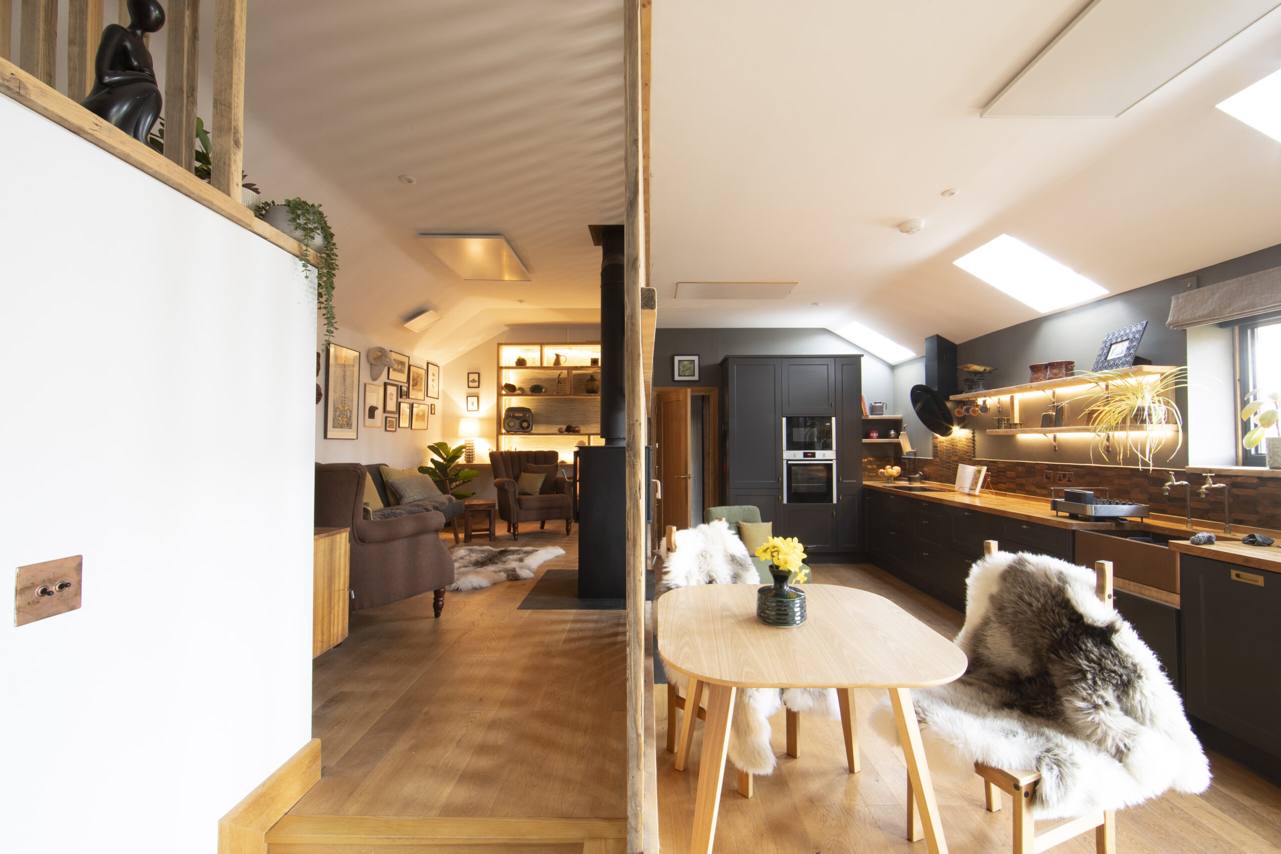 Beyond the barn, two acres of wildflower meadow and a natural swimming pool offer space to wander, with woodland walks beginning just beyond the door.