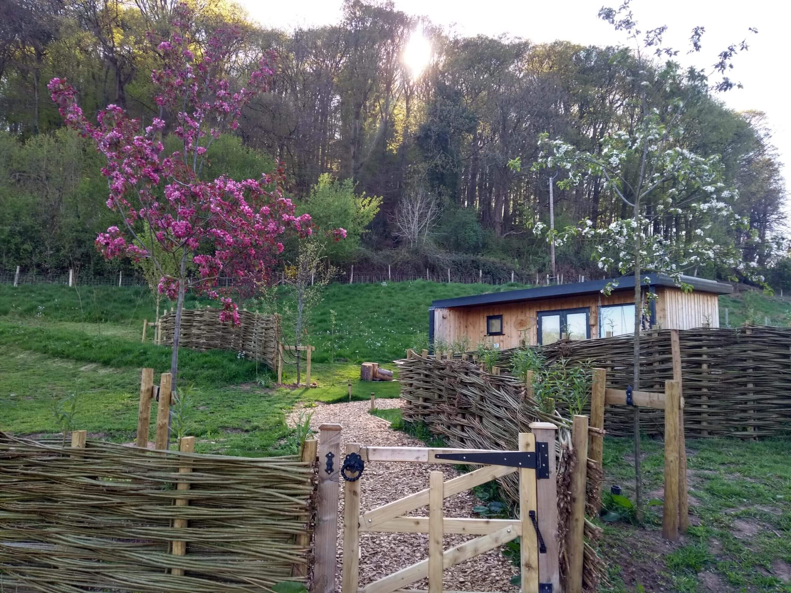 The cabins are situated within a beautiful two-acre meadow with a wildlife pond, rich with wild flowers, bordering ancient woodland, and a huge array of local wildlife, including the local bird, deer, and badger population.