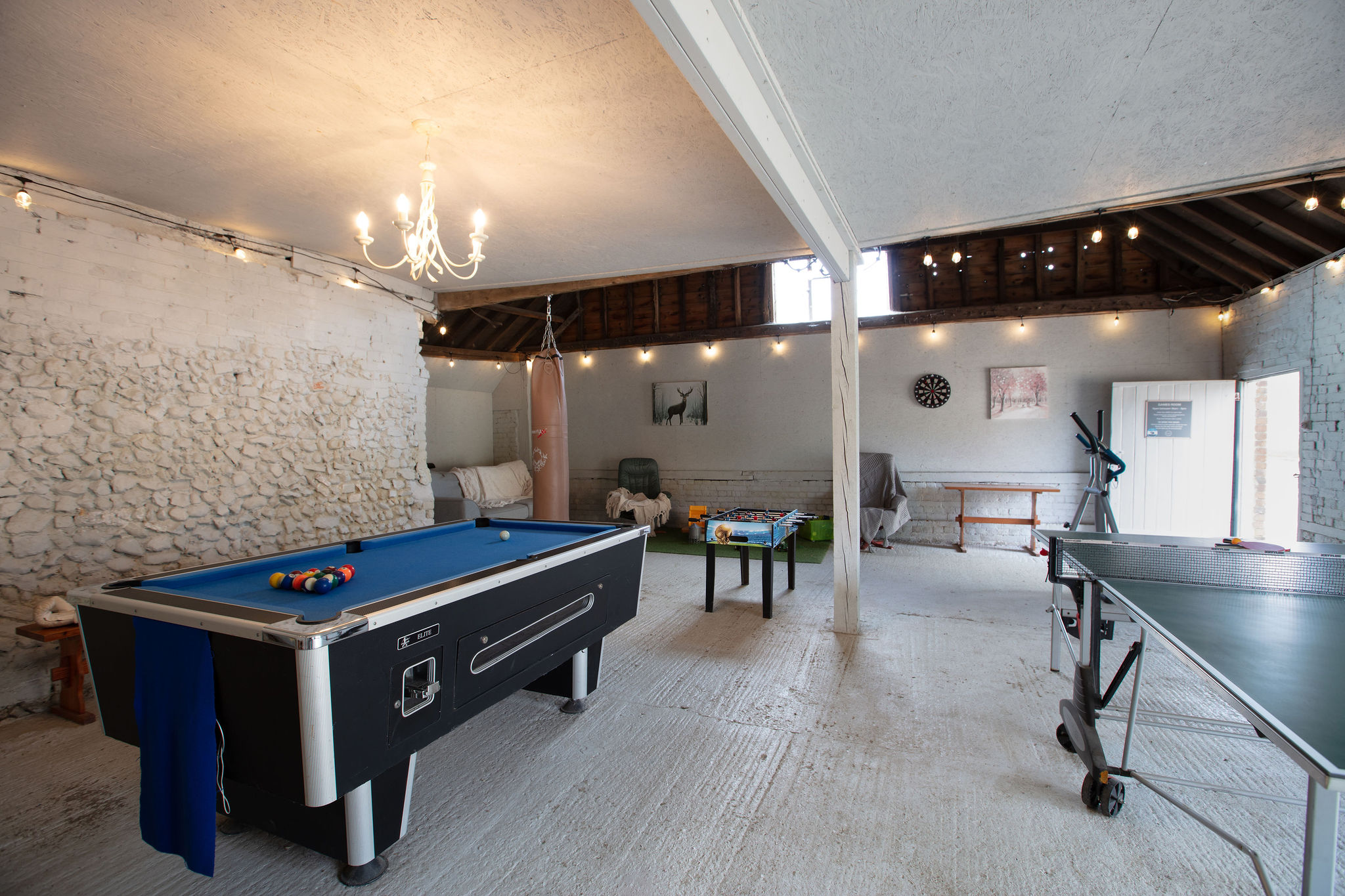 • On-site games room with table tennis, foosball, darts, boxing punch bag, and pool table