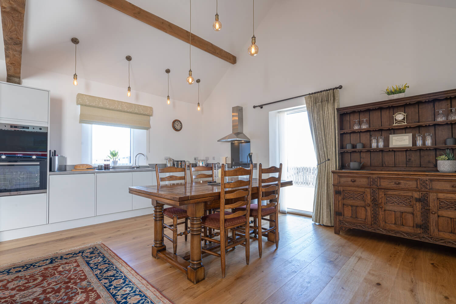 • Dining area with wooden table seating four – relaxed and intimate for evening meals