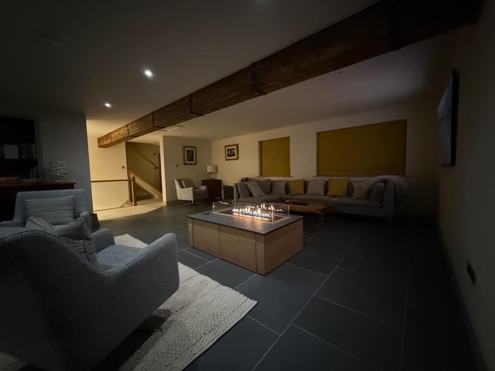 - 40m² sitting room with sumptuous sofas, and a fire for lazy evenings – with a unique island feature bioethanol fireplace centrepiece and 4.5m bifold feature doors leading onto the balcony