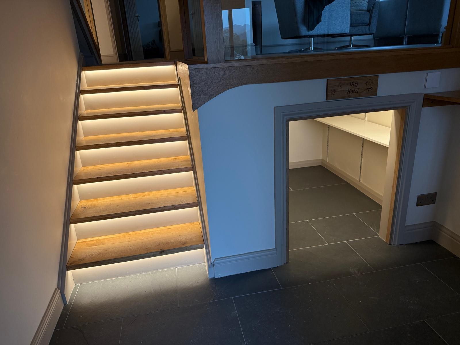 Wetherlam View was designed with four-legged guests in mind. There’s a cosy ‘dog hotel suite’ under the mezzanine landing with underfloor heating and a large George Barclay dog bed, plus the utility room has a dog wash stand and even a wall mounted dryer to clean up muddy paws. Outside, the secure enclosed front patio means dogs can relax safely while you do too. And with endless local walks and dog-friendly pubs nearby, they’ll be as happy as you are.