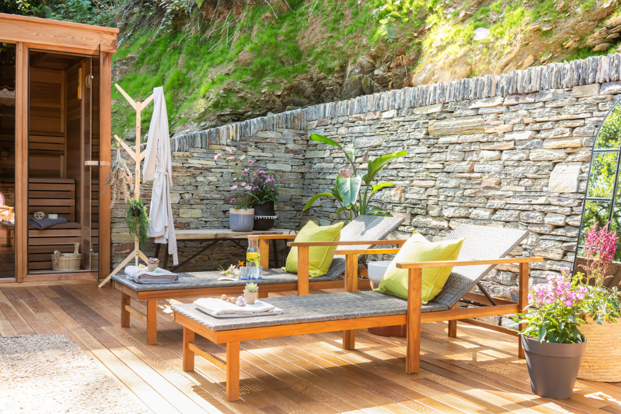 • Sun loungers positioned to enjoy warmer days and the natural setting