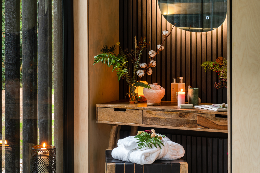 Wildwood Spa has been thoughtfully designed with sustainability in mind, with materials and systems chosen to sit in harmony with the surrounding woodland.