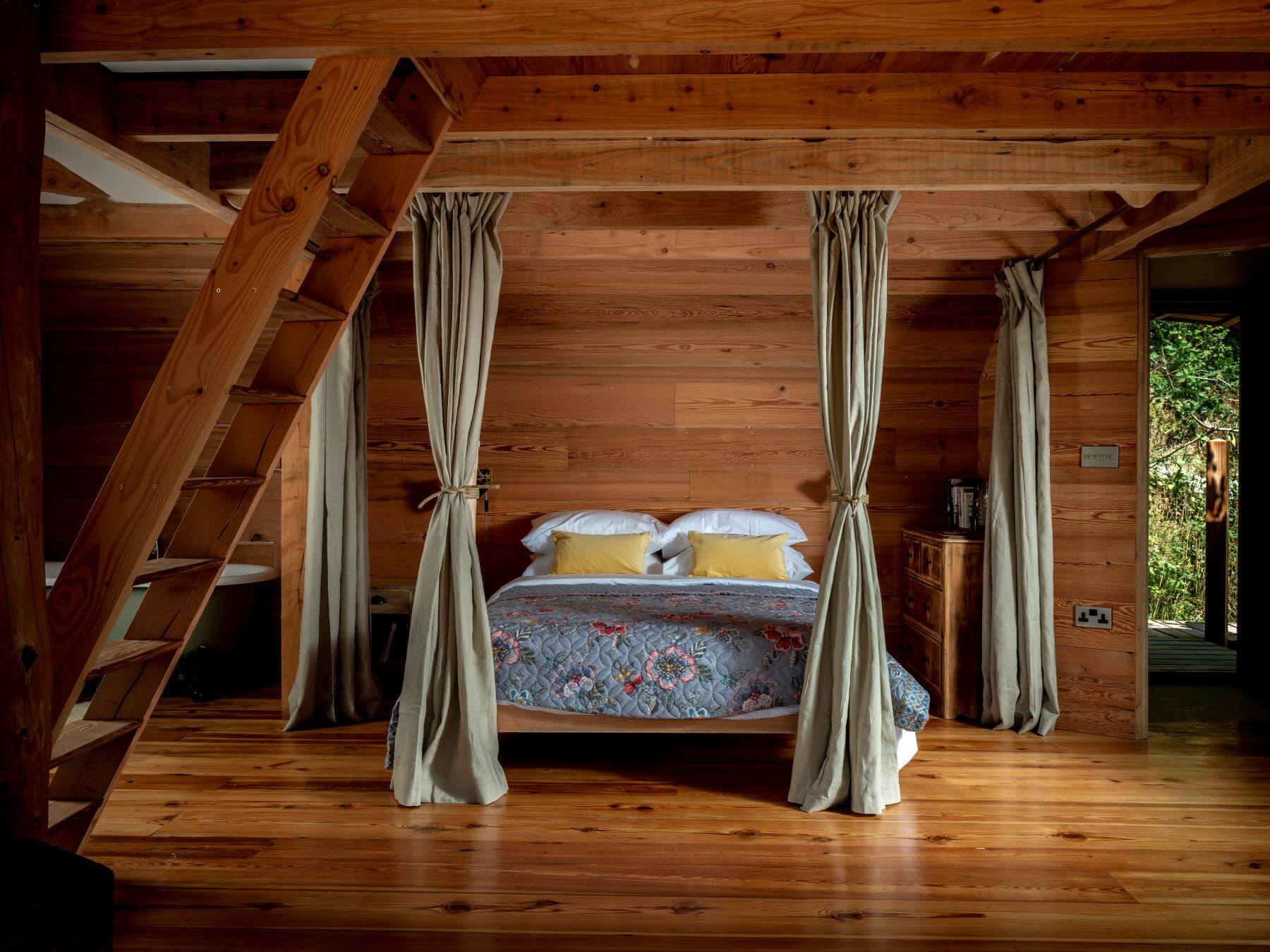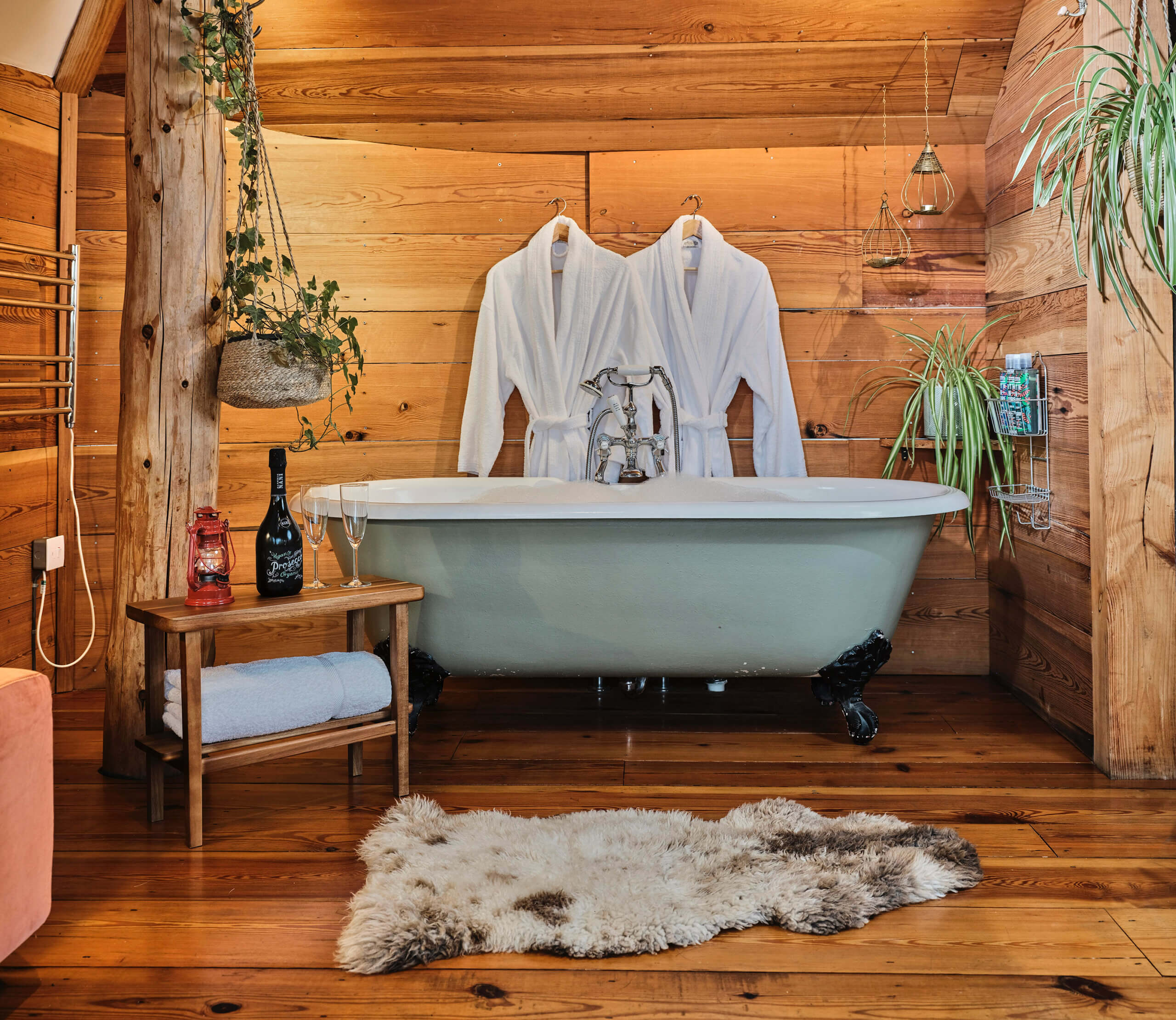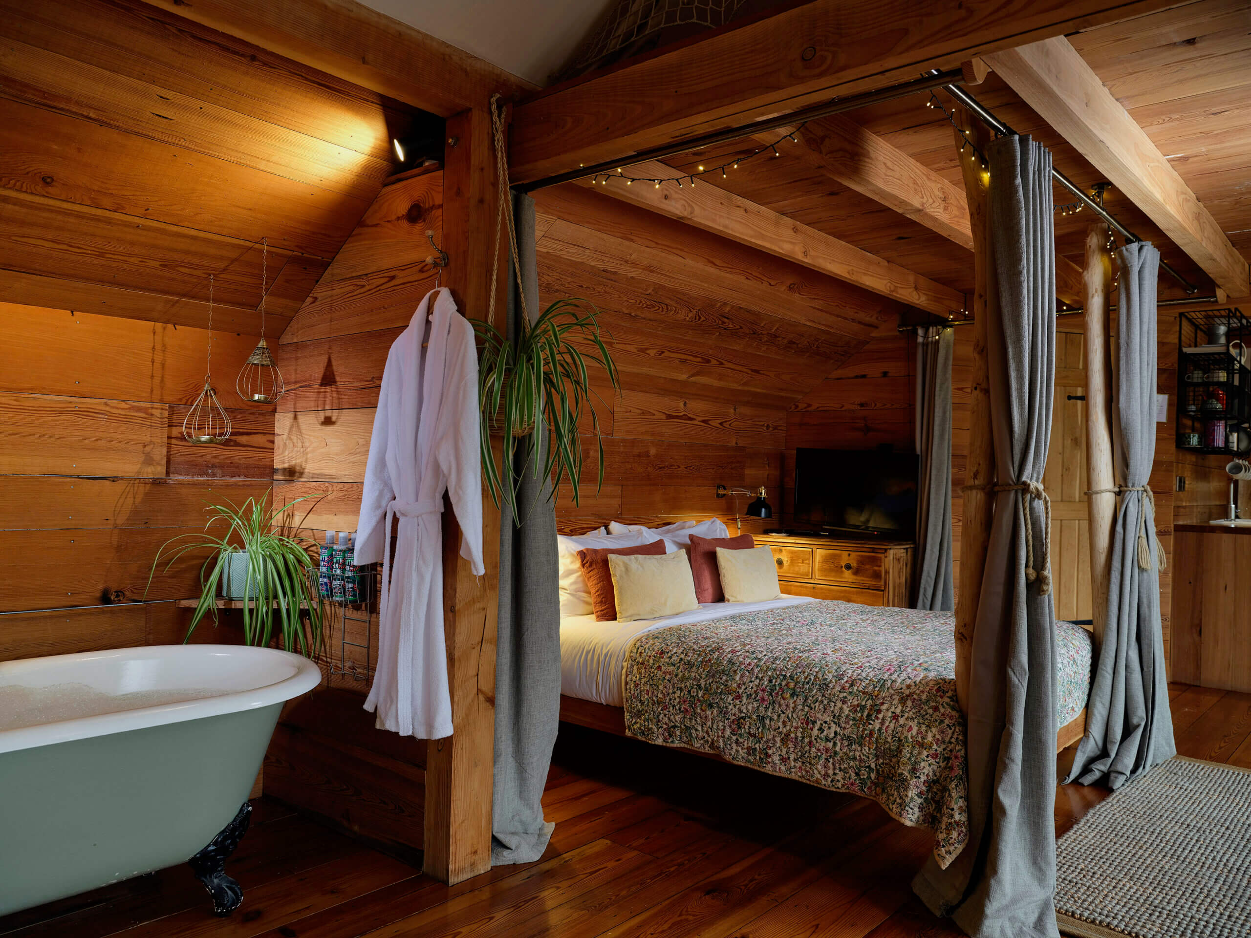 - A roll top bath in a small alcove in the main area of the treehouse
